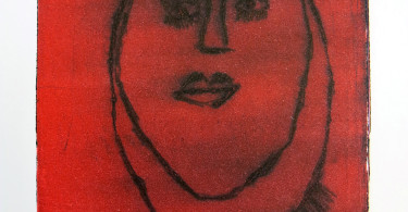 En eftermiddag hade vi besök av en grupp ungdomar i Röda Korsets regi. De gjorde kamratporträtt i torrnålsplast. Suomia och jag färgade in plåtarna, ungdomarna valsade färg över och tryckte.