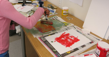 Högen med bilder växte och blev otroligt tjock. Barnen jobbade på energiskt och experimenterade mycket med att just valsa färg och trycka.