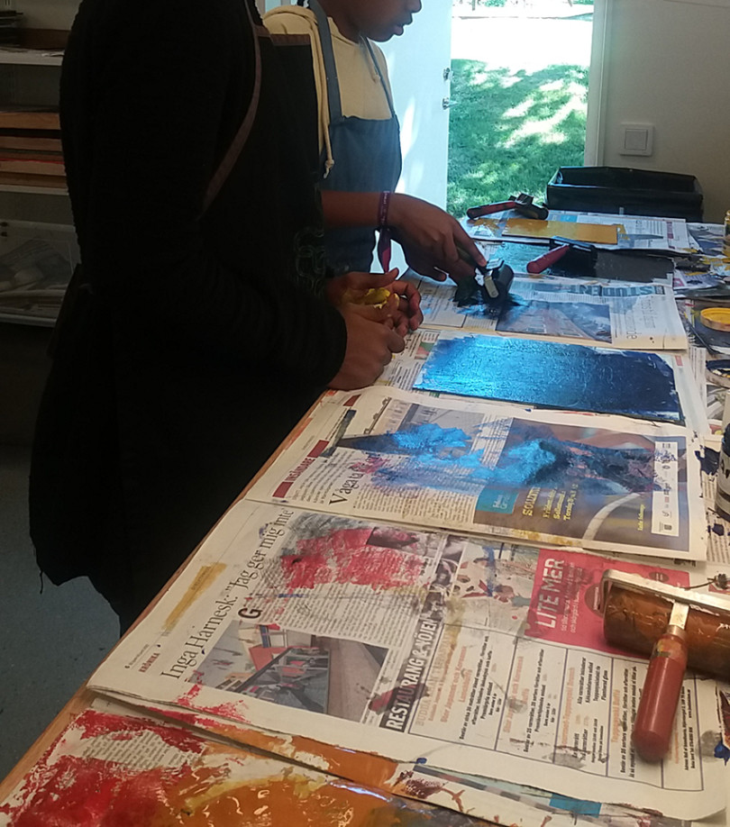 I och med att sommarjobbarna själva fick prova på alla tekniker kunde de använda sin tekniska kunskap och assistera oss handledare med barnen i de olika verkstäderna. Ungdomarna tog verkligen ansvar för den uppgiften, vilket var mycket positivt. De tre veckorna avslutades med en välbesökt endagsutställning i Husby Konsthall och en utställning av grafiken som producerats på Grafiska Sällskapets galleri en vecka i september i samband med att galleriet öppnat för säsongen.