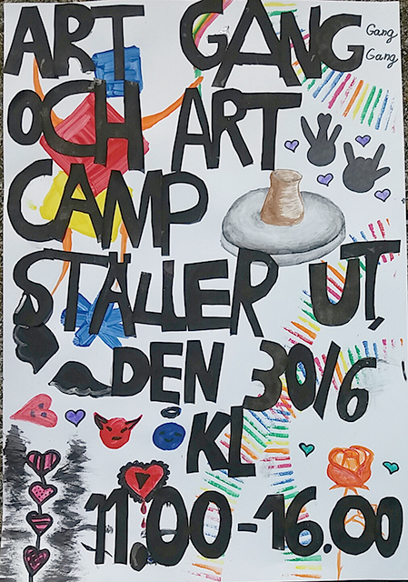 Samtidigt deltog ”Art Gang”, tio ungdomar i åldern 15-19 år vilka var årets sommarjobbare inom kultur på Husby Gård. Ungdomarna har jobbat i en egen konstnärlig process och lärt sig olika konstnärliga tekniker och uttryckssätt och också varit med i verkstäderna tillsammans med barnen. Under 2017 har Husby Gård temat ”Frihet” för sin verksamhet. Det innebar att det kändes självklart att det även fick genomsyra verksamheten för barnen under veckorna. Reflektioner kring ord, översättningar och betydelser för frihet på olika språk uppstod.