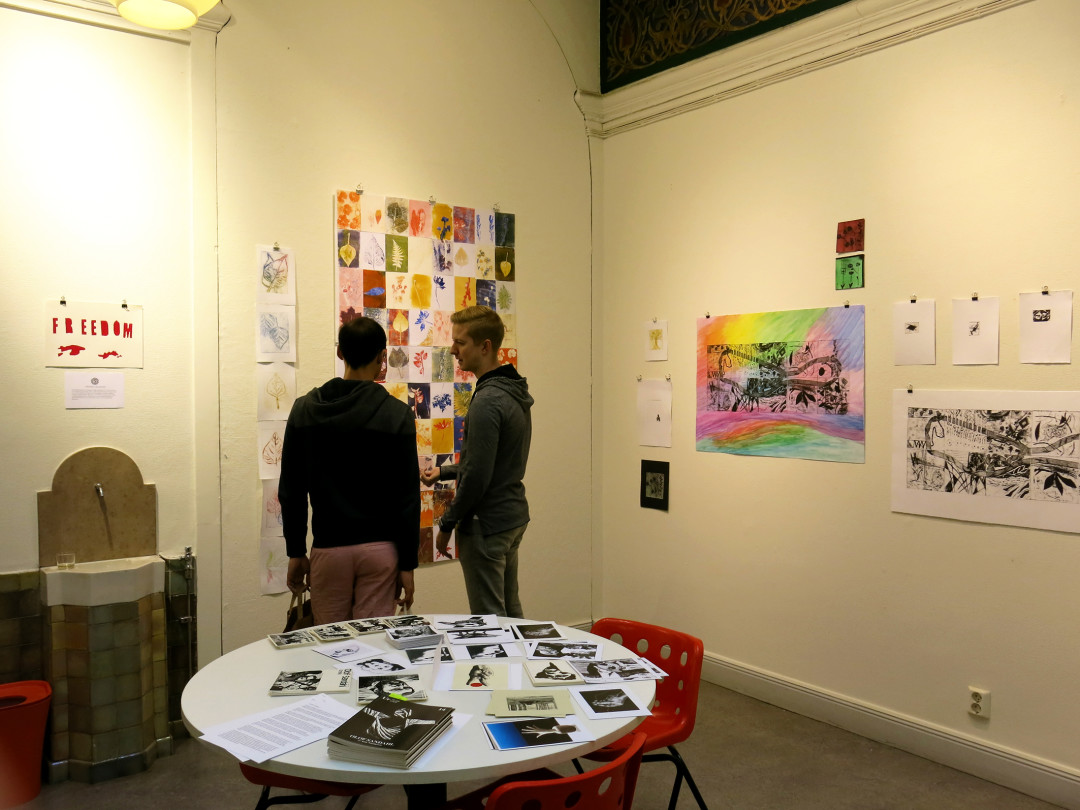 I och med att sommarjobbarna själva fick prova på alla tekniker kunde de använda sin tekniska kunskap och assistera oss handledare med barnen i de olika verkstäderna. Ungdomarna tog verkligen ansvar för den uppgiften, vilket var mycket positivt. De tre veckorna avslutades med en välbesökt endagsutställning i Husby Konsthall och en utställning av grafiken som producerats på Grafiska Sällskapets galleri en vecka i september i samband med att galleriet öppnat för säsongen.