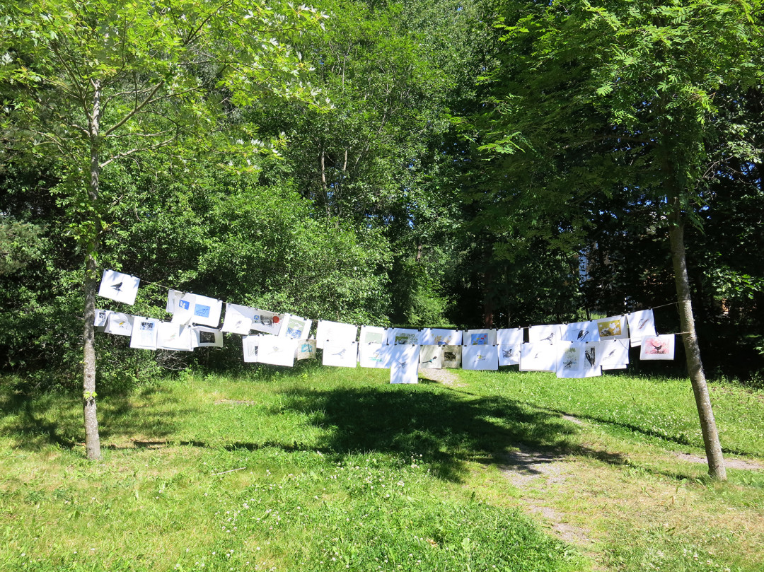 Efter 14-dagars intensiva arbete var det dags för vernissage i trädgården. Barnens alster arrangerades på husväggar, i träden och på marken. Föräldrar och övriga intresserade kom. Bland besökarna var också kultursekreteraren i Rinkeby-Kista stadsdels förvaltning, Ulrika Nilsson-Nilsfors, Hon var mycket positiv till GS samarbete med Husby Konst och Hantverksförening.