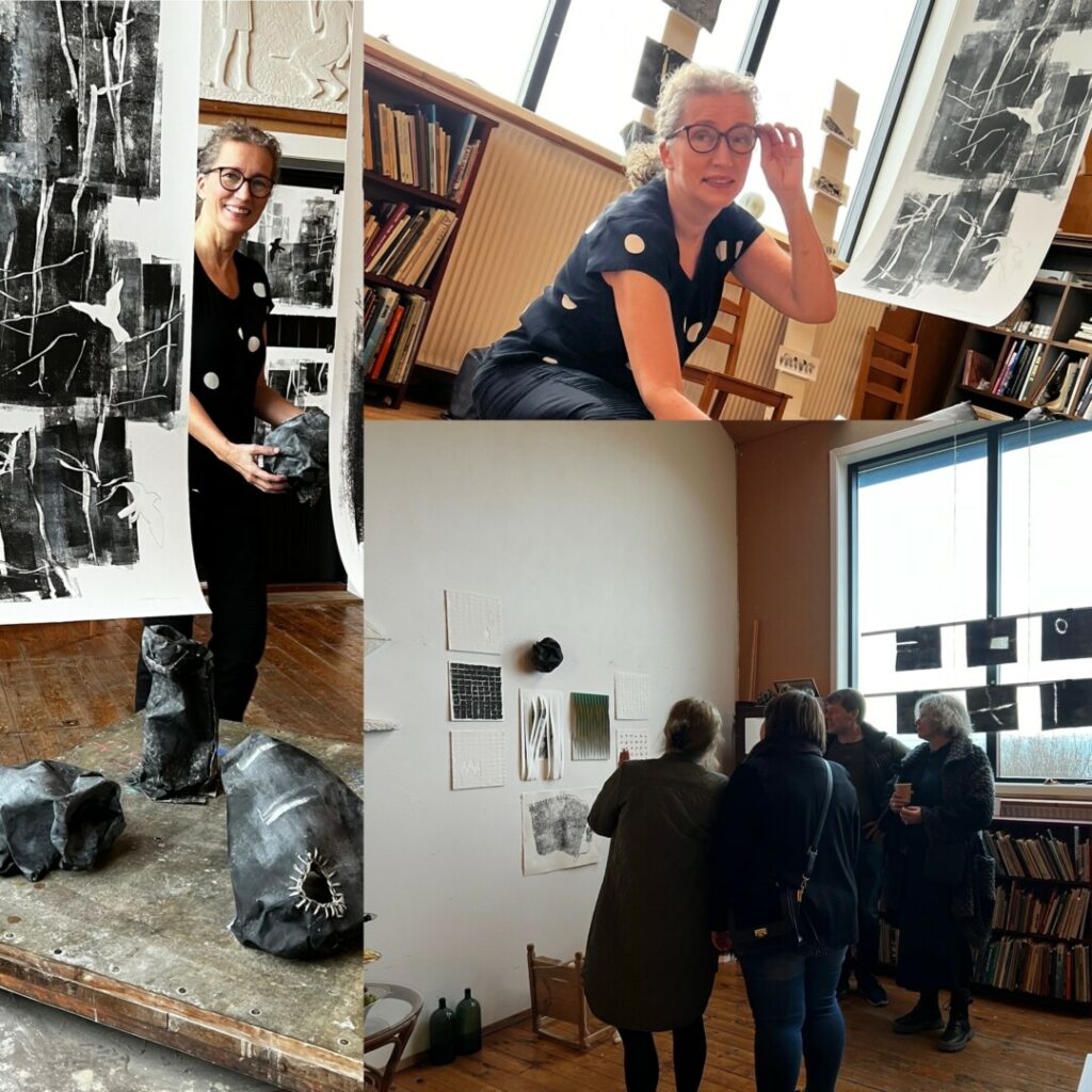 pm I samband med Nordiskt Grafiksymposium på Färöarna besökte Grafiska Sällskapets styrelseledamot Tova Fransson tillsammans med representanterna från Fyns Grafiske Værksted, daglig ledare Lene Leveau och styrelsens ordförande Erling Janum, huset och färöiska konstnären Birgit Kirke, som var där på en månads uppehälle under oktober 2022.