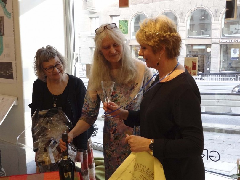 När jag frågar Britt om hur arbetet på galleriet har förändrats under de 28 åren (och 325 vernissager!) som gått svarar hon snabbt att det blivit mer och mer att göra. Arbetsbelastningen har ständigt ökat, från att vara 4 anställda under flera år i början på 90-talet  till nuvarande 2 tjänster som ska sköta allt. Det ideella arbetet från medlemmarna har minskat betydligt. Förr var det medlemmarna som helt och hållet skötte arbetet med portföljen t.ex. Det sociala livet har också påverkats av ett arbete som innebär ledighet var tredje helg samt  en del kvällsarbete.  Men trots allt så har det varit  hennes livs  roligaste jobb.