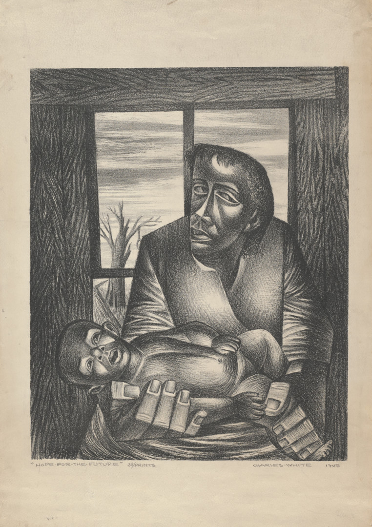 Charles White föddes 1918 i Chicago. Flyttade senare till New York och tillbringade sina sista år i Los Angeles. I var och en av dessa städer blev han en nyckelfigur i en vibrerande samling av konstnärer, författare och aktivister som delade engagemanget för afroamerikaners umbäranden och förtryckta människor överallt, fattigdom, arbetares rättigheter och social rättvisa. De delade också hängivenheten för att skapa konst som tydliggjorde dessa orättvisor. White var övertygad om att konsten var ett vapen för att slåss mot orättvisor och han förstod grafikens potential för att sprida idéer och bilder. Detta hade han lärt sig på WPA och den revolutionära verkstaden Taller de Gráfica Popular i Mexico City på 40-talet. Whites exceptionella hantverksskicklighet som tecknare, grafiker och målare och hans friska experimenterande mellan dessa medier gjorde att hans bilder fick ett enormt genomslag.