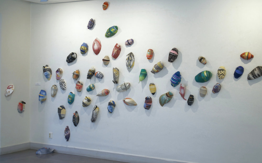 Det är utställning med en härlig experimentell lekfullhet som visar på många möjligheter med den collografiska tekniken. De har alla fem en stor lust för färg.