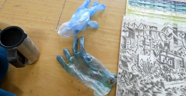 Ellisif Hals har också i samarbete med Susanne Skeide arbetat fram verk som svävar fritt i rummet. Grafiska blad sammansatta till skulpturala former, torrnålstryck klippta och omformade.