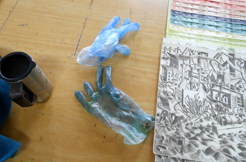 Ellisif Hals är en ung konstnär född i Norge 1981 och bosatt i Malmö som hittat sitt alldeles speciella sätt att lyfta fram sina grafiska blad. Hon bygger och hennes motiv har ofta en arkitektonisk ton.