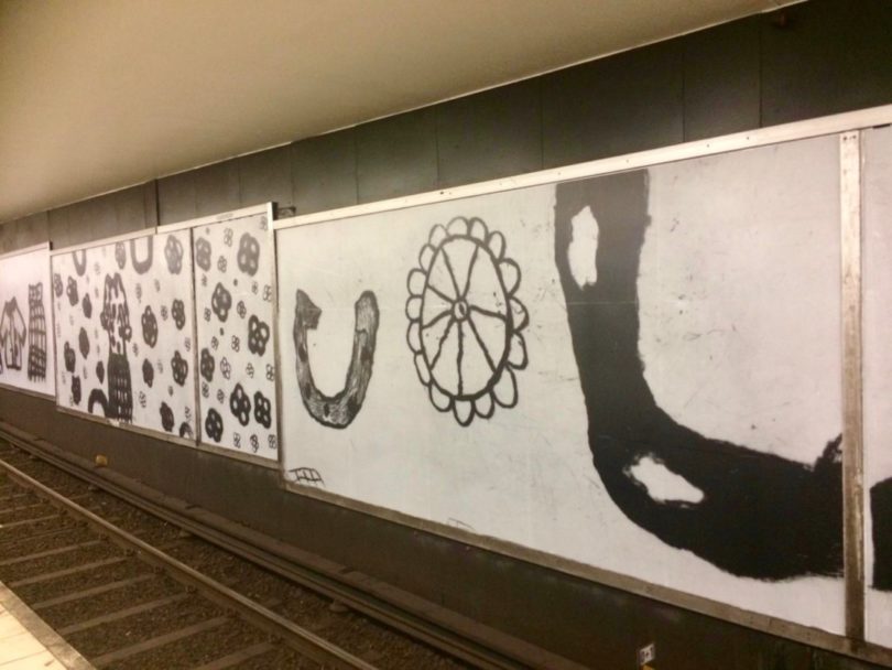 ett grafikprojekt för SL:s konstväxlingar på Slussens tunnelbanestation (västra)