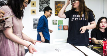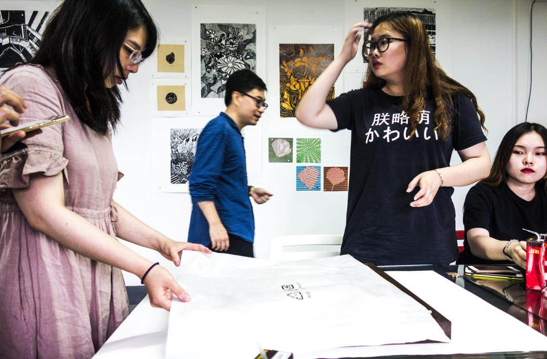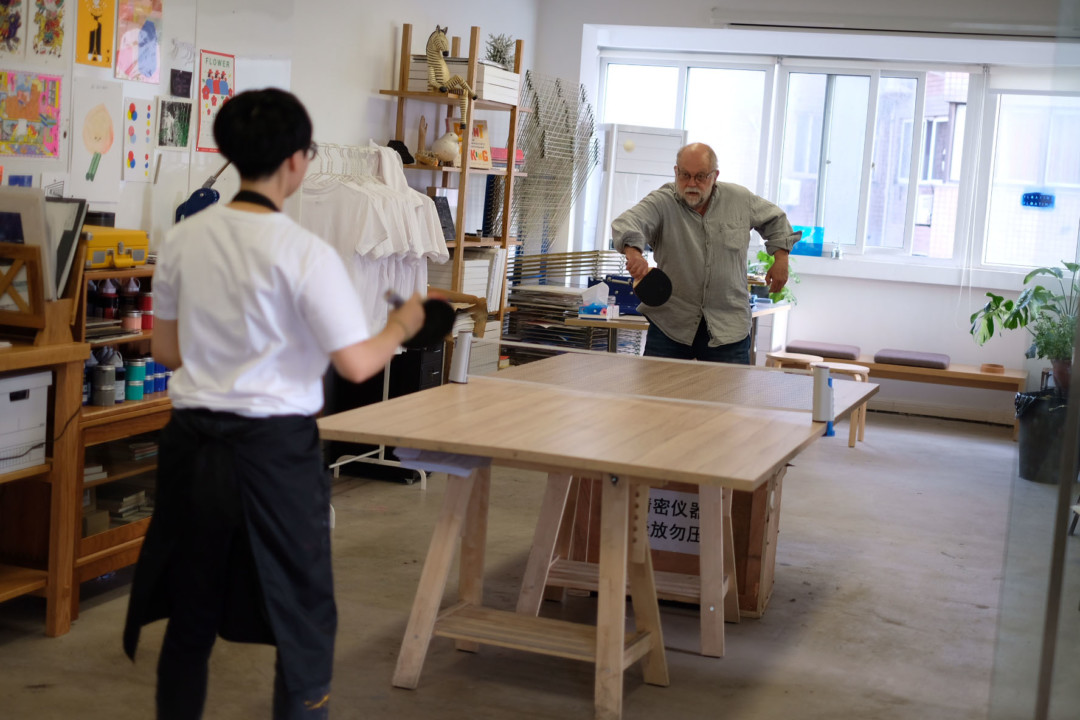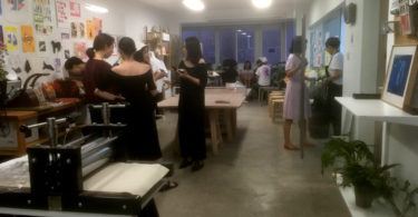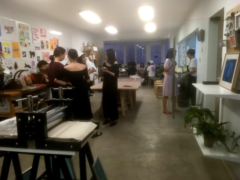 Genom Waverlys förmedling fick jag besöka Hammer Chen’s ateljé, Wait and Roll, just när ett print party pågick. Tjugo eller trettio unga konstnärer kom och gick under eftermiddagen och kvällen, åt, drack, pratade och skojade, spelade pingpong (inte bordtennis) och tryckte silkscreen. Vi besökte också Press Matter, ett annat silkscreentryckeri som samarbetar med konstnärer.