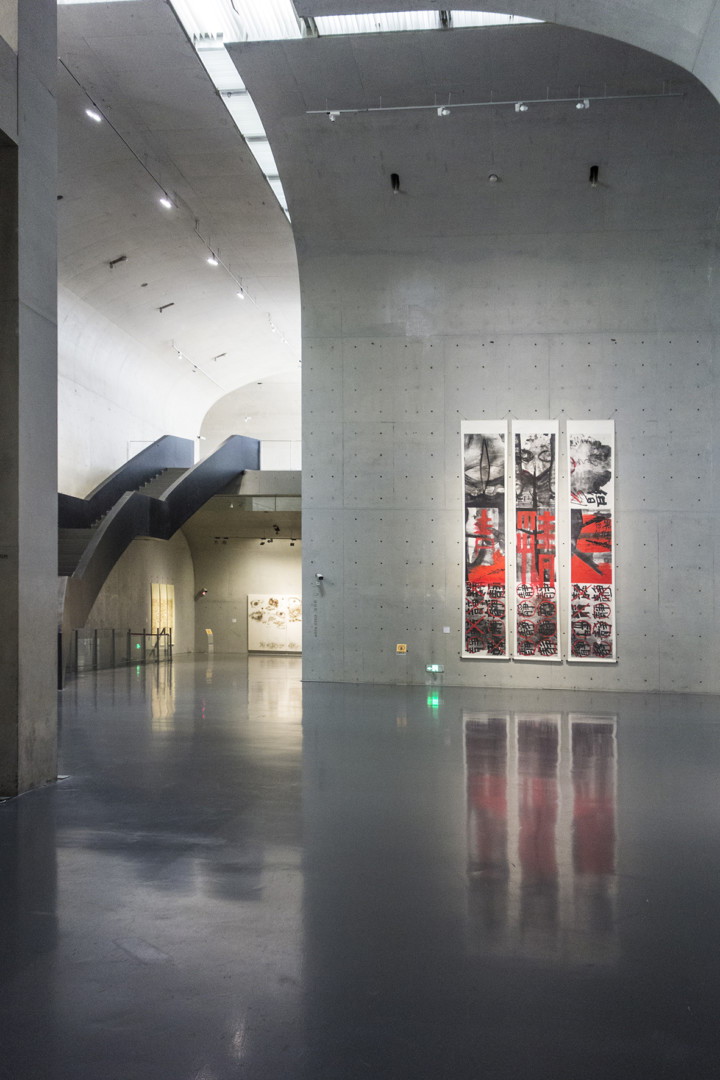 Jag gillade arkitekturen i The Long Museum med dess stora, höga salar i vacker, grå betong. Museibyggnaden var integrerad med rester av industrilokaler i anslutning till Huangpu, ”the Mother River of Shanghai”, en livsnerv . Huvudnummer vid tiden för mitt besök var en samlingsutställning med olika exempel på den senaste femtio årens kinesiska konst, mest måleri. Intrycken av västerländsk konst är påtagliga, men skickligt och intelligent bearbetade.