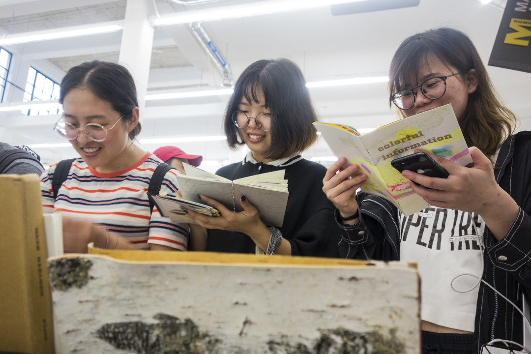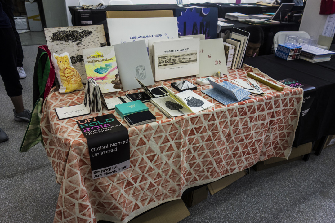 Målet för min resa var också UNFOLD Shanghai Art Book Fair, där vår agent Wavely lanserade svensk bokkonst. Det gjorde hon bland hundratals konstnärer från hela världen i en stor och trång lokal i konst- och kulturkvarteren M50, ett f.d. textildistrikt. Mässan var en succé, publiken strömmade till i tusental under de tre dagarna den pågick. Den släpptes in i omgångar, en hundra- eller tvåhundrameterskö ringlade över gården, ut på gatan i regnväder. De allra flesta var mellan tretton och trettifem, och de var uppenbart fascinerade av de handgjorda, individuella uttrycken i böckerna. Jag tänkte åter på vad kulturevolutionen rensat bort från denna trendiga generations historia, på vad de INTE ärvt av sina mor- och farföräldrar. De flesta jag mötte hade skaffat sig fräcka, internationella namn som de använde i istället för sina kinesiska – Hammer, Cyane, Judy etc. Förresten gjorde jag ett misstag som skaffade visitkort inför resan; ”We don’t use businesscards any longer but I’d be glad to scan your QR-code”. Kontakter upprätthålls via mobilen. /Björn Therkelson