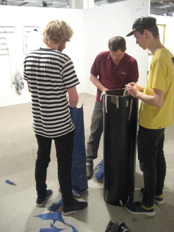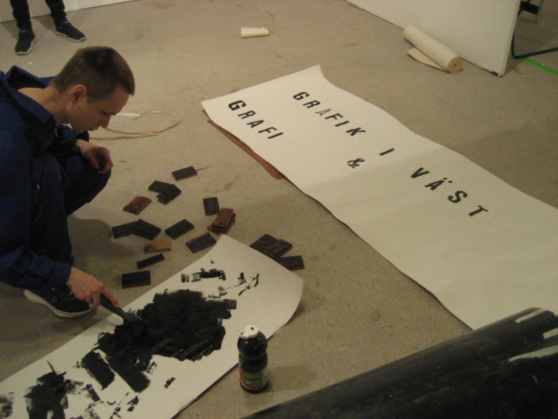 Deltagarna i det gemensamma grafiska installationsprojektet mellan Grafik i Väst och Grafiska Sällskapet i Stockholm var Eric Saline, Jakob Leijonhielm, Maria Erikson och Nina Bondesson (som var med på fredagen). Med var också tillfrågade studenter från de båda förberedande konstskolorna i Göteborg; Laurens Rohlfs (Domen konstskola) och David von Bahr (Göteborgs konstskola).