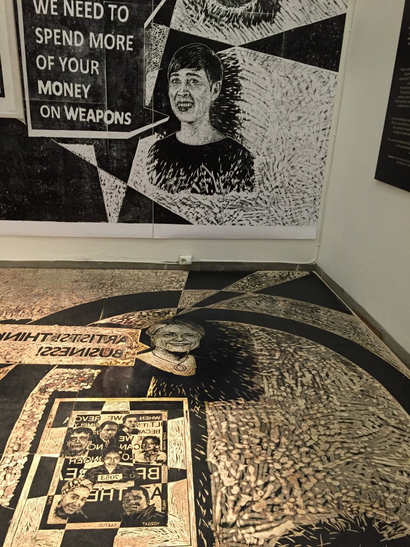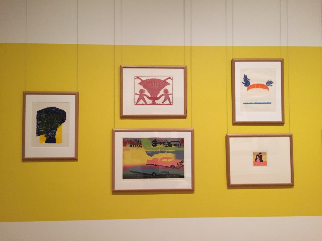 Stora och små underbart fina konstverk av både äldre och samtida konstnärer. Bl.a vår egen Ulla Wennberg . Fyra salar med träsnitt varav ett rum är helt klätt i de avtryck av stockarna som man vandrar på när man träder in i salen.