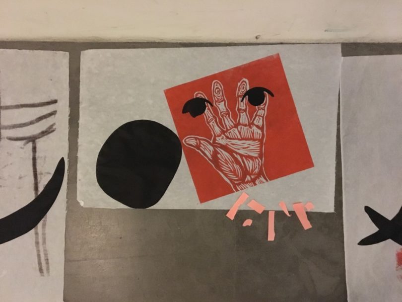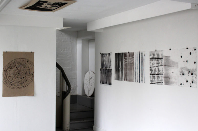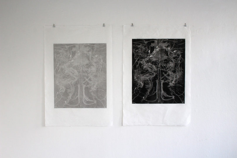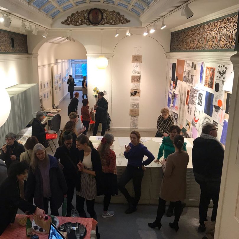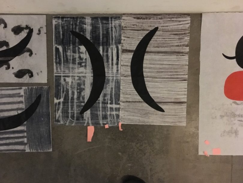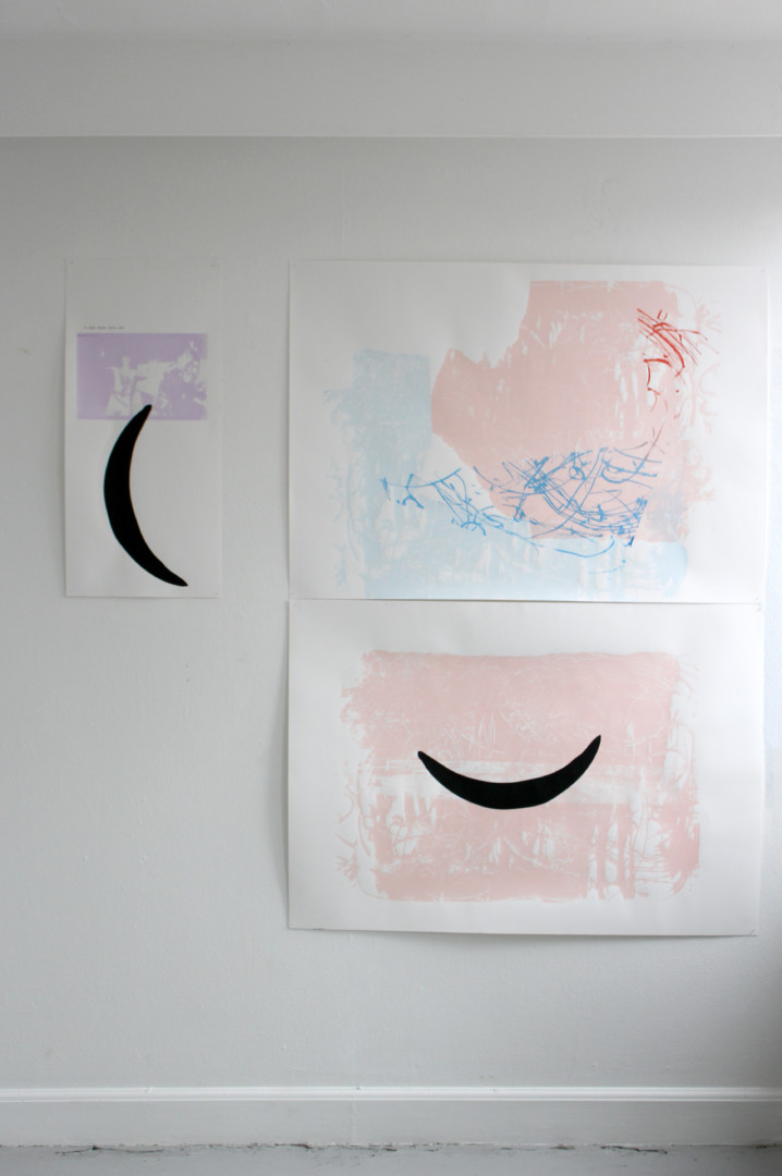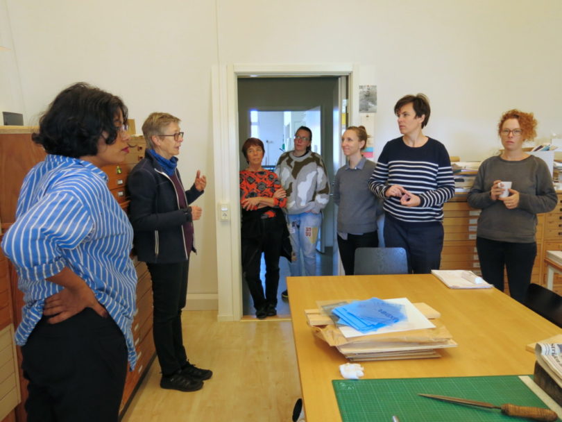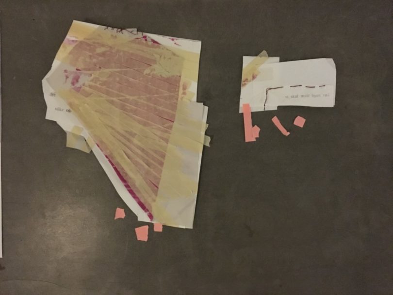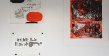Opportunities for artists to make connections with others working with similar practices can be rare, even between countries as geographically close as Denmark and Sweden. The Grafisk Udveksling project was an important initiative to bring together a number of artists working in the field of printmaking together to trade ideas, techniques, and above all to build a community. Getting to know each other, and being introduced to everyone’s art, was full of surprises — but the real excitement came in the process of making, at KKV in Malmö. The hallway rapidly filled with experiments, collaborations, pieces waiting for another layer, and those deemed finished. The prints stretched the length of the corridor, on both sides. It was an outpouring of creativity. The main work of community-building happened in these moments, with dirty hands and ideas, over tea and cake. And I think the enthusiasm can be seen in the work, its variety and life.