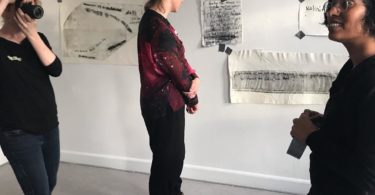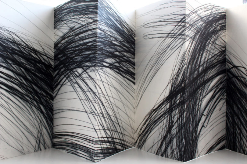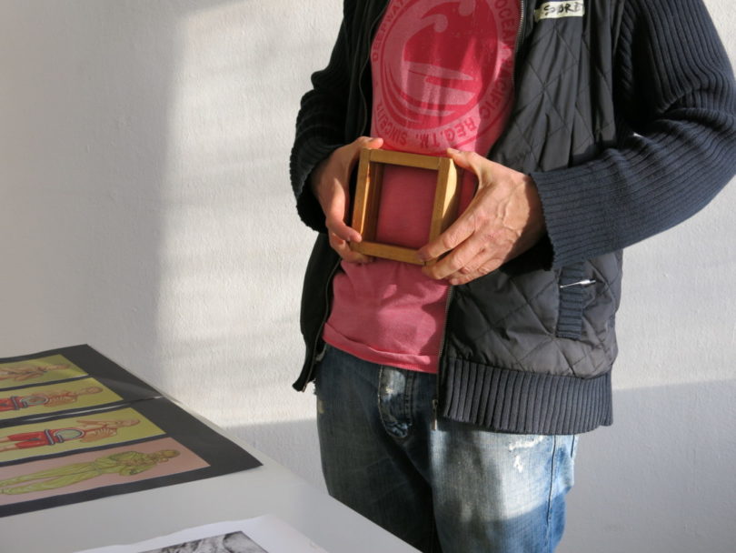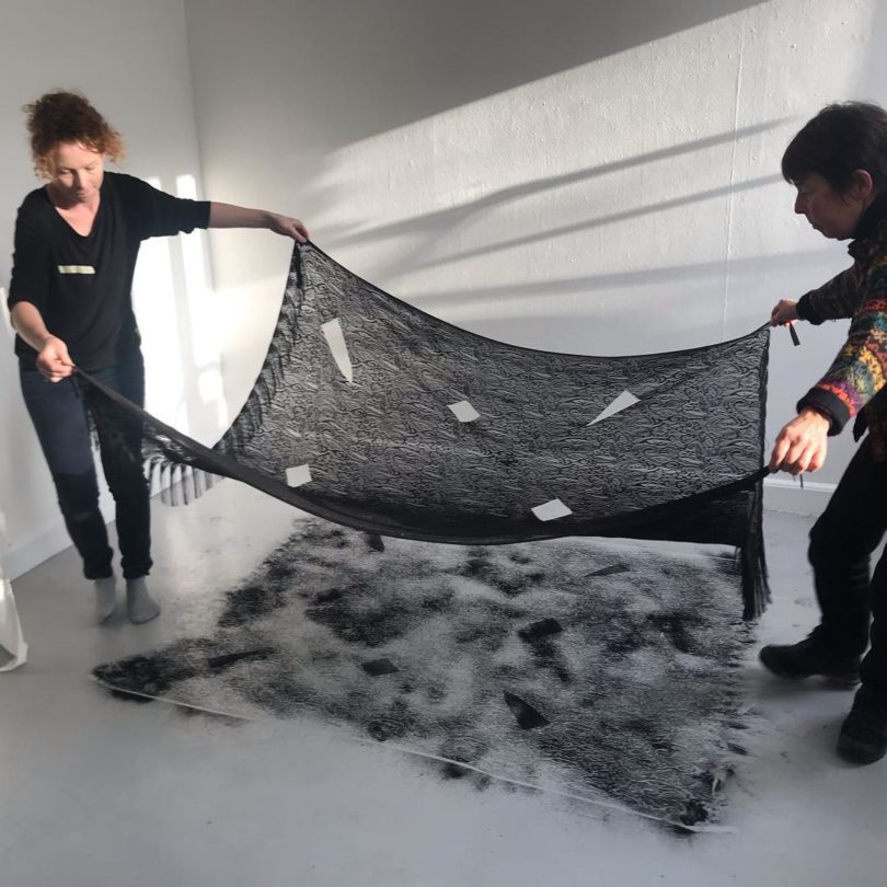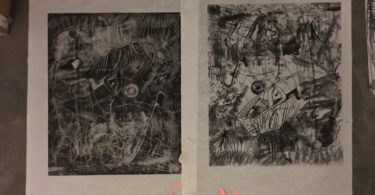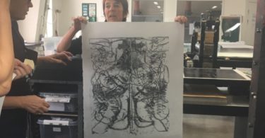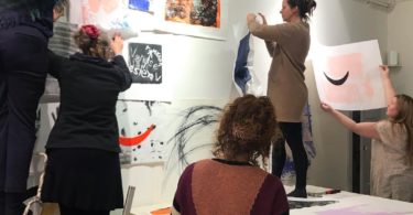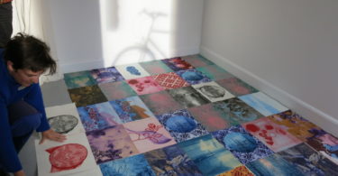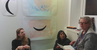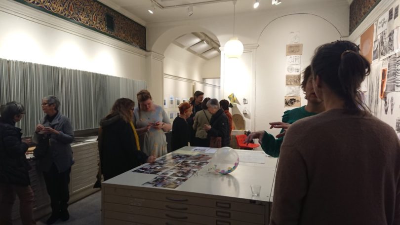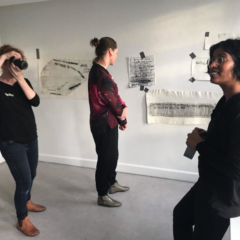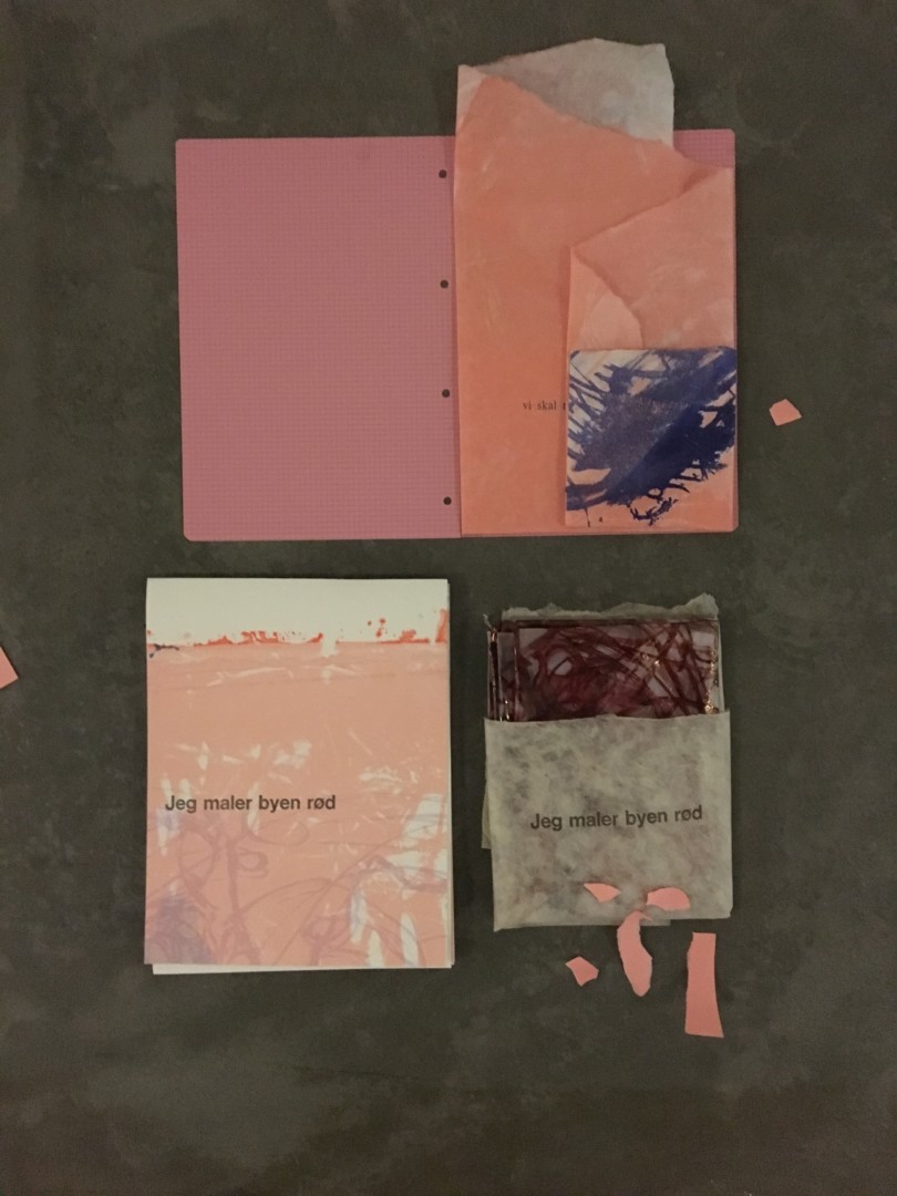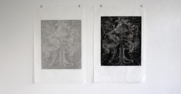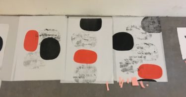 Opportunities for artists to make connections with others working with similar practices can be rare, even between countries as geographically close as Denmark and Sweden. The Grafisk Udveksling project was an important initiative to bring together a number of artists working in the field of printmaking together to trade ideas, techniques, and above all to build a community. Getting to know each other, and being introduced to everyone’s art, was full of surprises — but the real excitement came in the process of making, at KKV in Malmö. The hallway rapidly filled with experiments, collaborations, pieces waiting for another layer, and those deemed finished. The prints stretched the length of the corridor, on both sides. It was an outpouring of creativity. The main work of community-building happened in these moments, with dirty hands and ideas, over tea and cake. And I think the enthusiasm can be seen in the work, its variety and life.