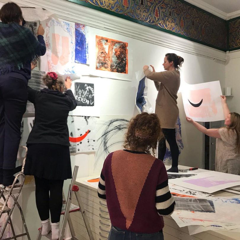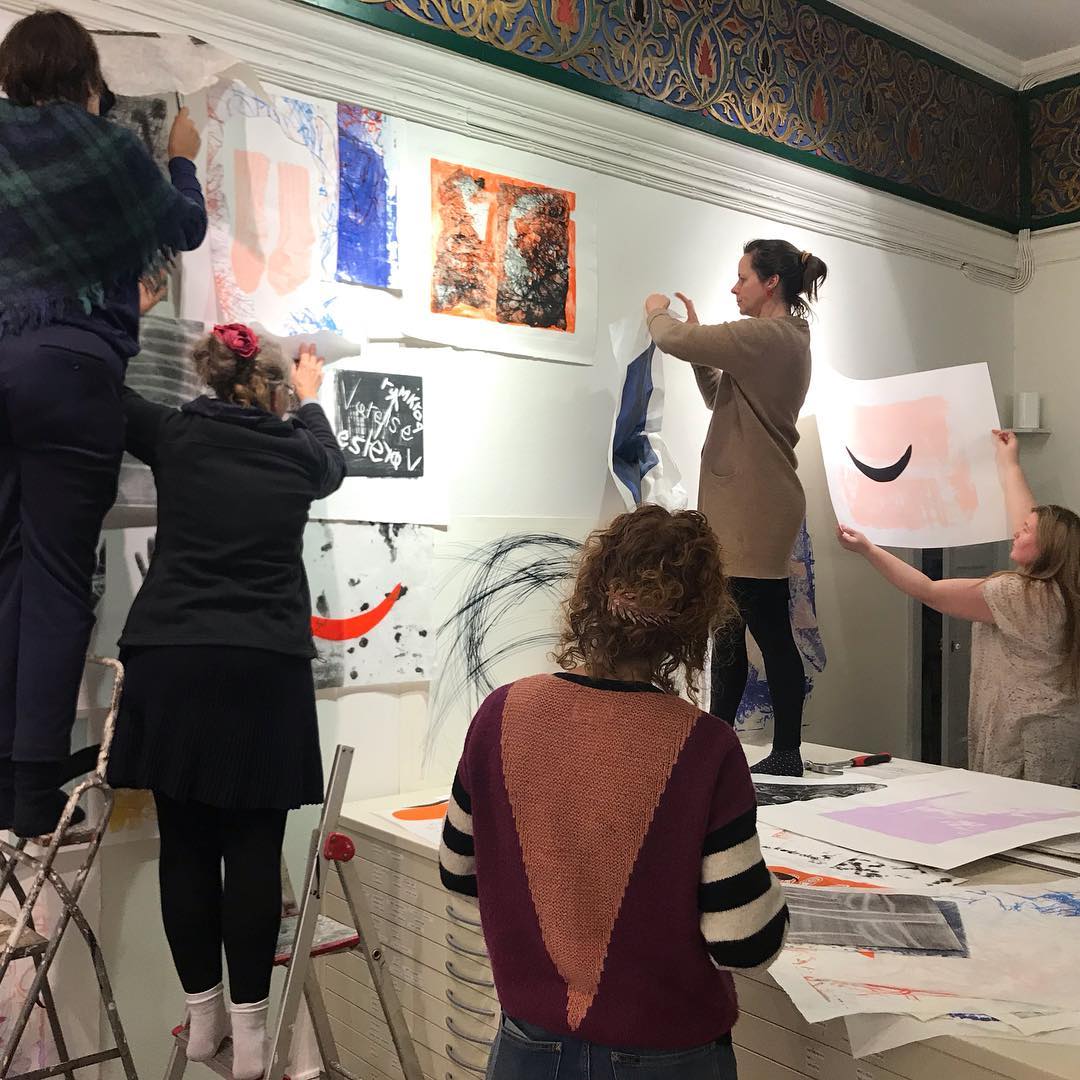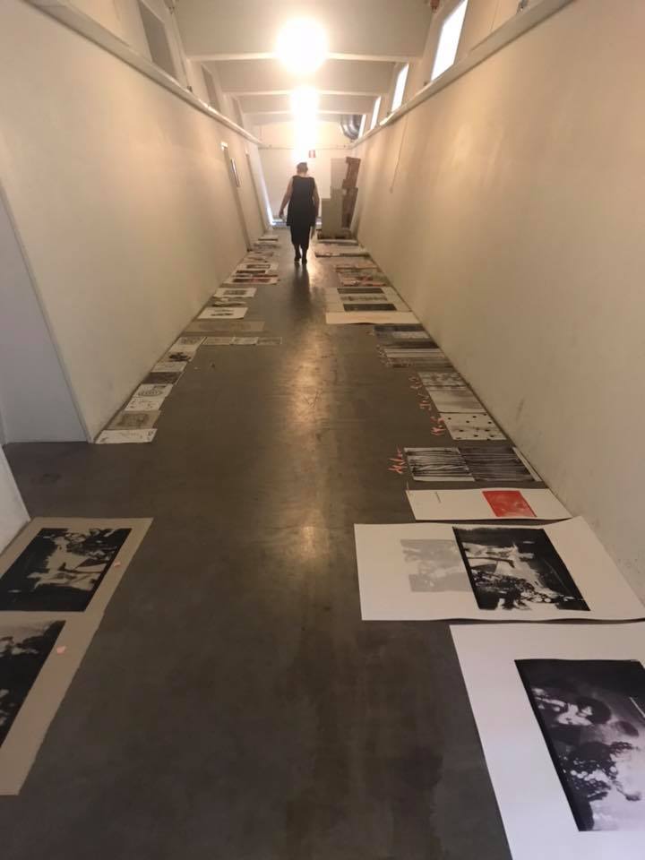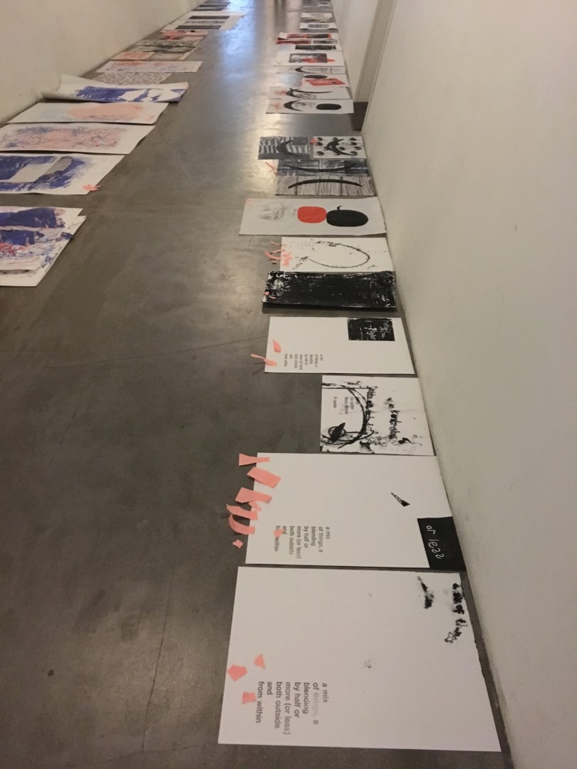 SÅ mycket grafik det blev på tre dagar! Hela gången fylldes utanför med alla bladen. Sista dagen fick vi lägga lappar på de verk vi tyckte bäst om. De bladen blev sen det som plockades fram vid hängning både i Köpenhamn och Stockholm.