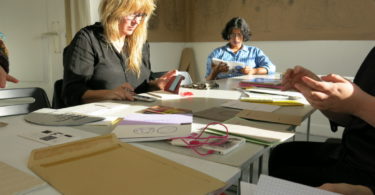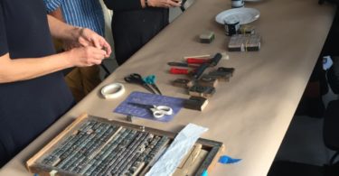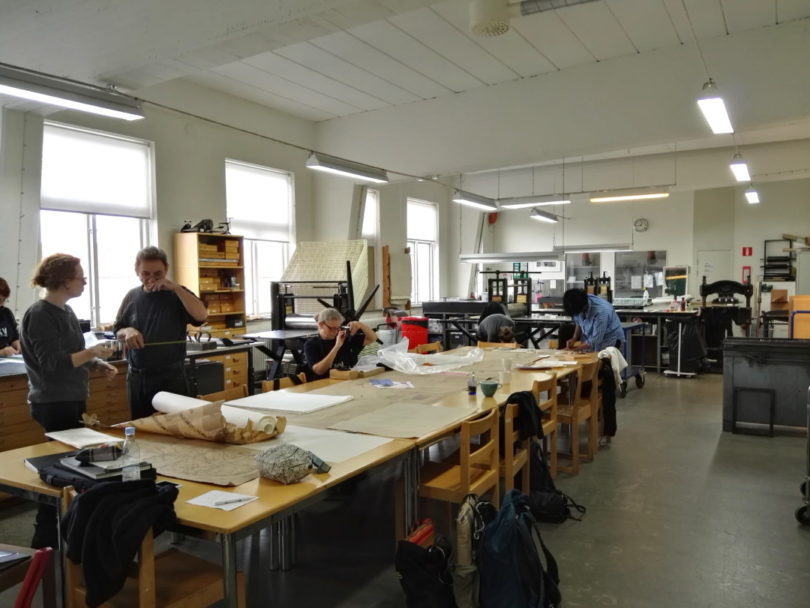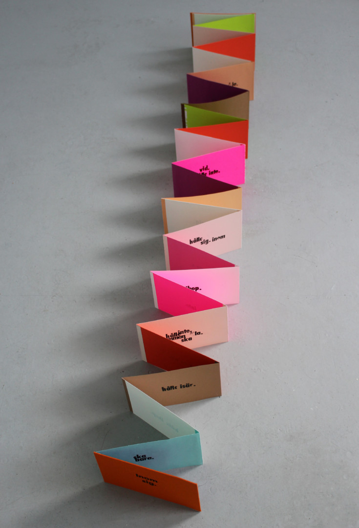 Valet föll på Megan Adies poetiska pappers-performance som vi fick utföra första dagen på seminariet. Att papper kan låta vet vi alla. Men att papper kan bli musik var en upplevelse. Varje papper hade olika egenskaper och skala och Megan hade tryckt i letterpressen på varje papper hur var och en skulle hantera papperet. Megan (som även är musiker) dirigerade oss via en datorskärm då hon inte kunde närvara i Stockholm. Det blev återigen en häftig upplevelse då vi återupplevde ”Pappers-orkestern”.