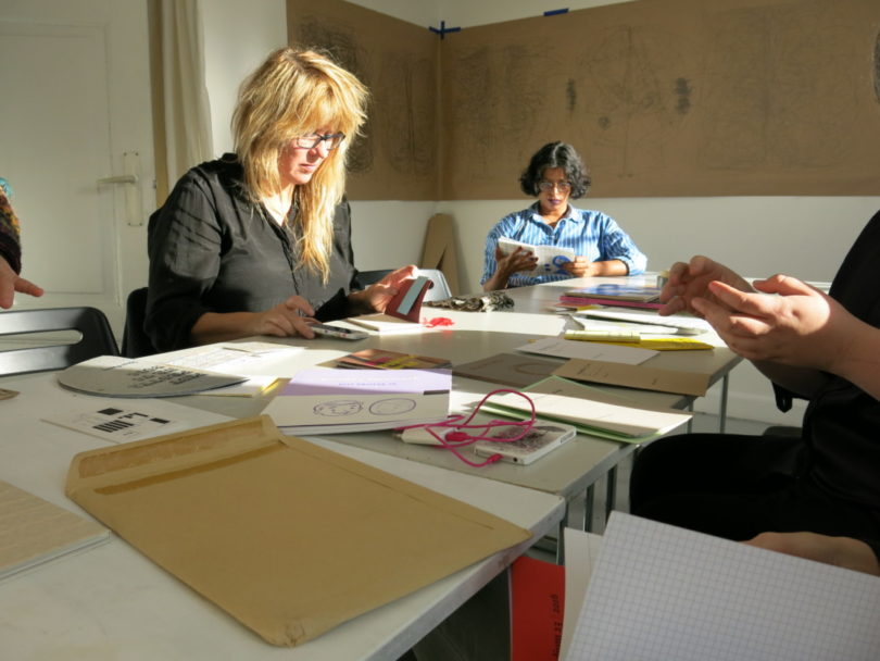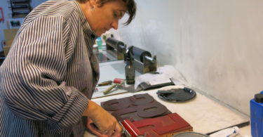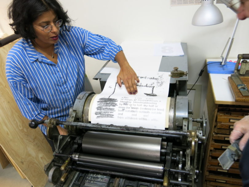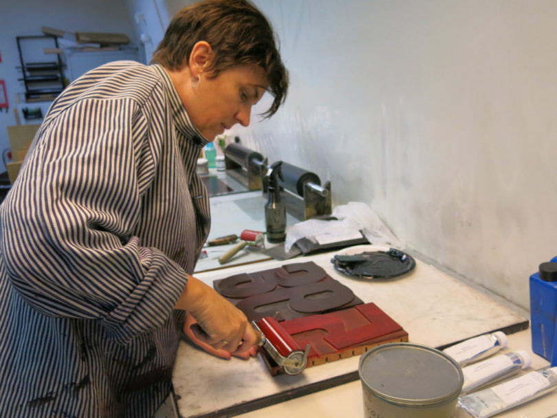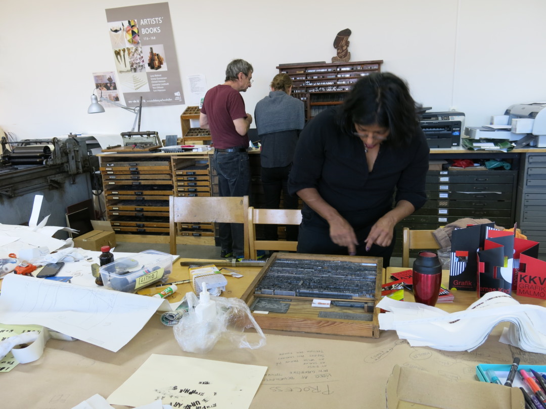 Megan Adie som är utbildad att trycka med Letterpessen och som kan den utan och innan, visade oss hur vi skulle trycka med bokstäver. Sista dagen sammanställde Megan en mängd artist´s books utifrån alla våra tryck. Ingen bok blev den andra lik. En fröjd att se henne arbeta med kniv, skalpell och linjal.