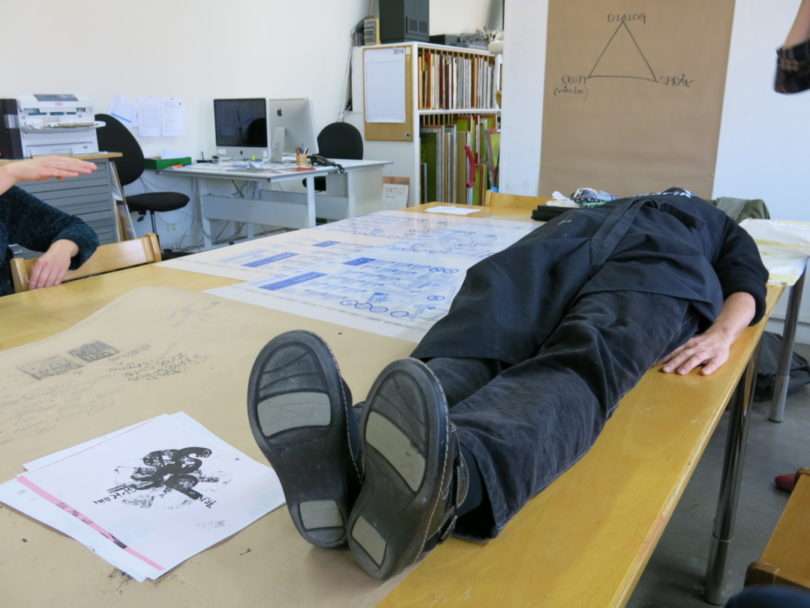 Vi diskuterade över fika (och croissanter) hur vi skulle lägga upp arbetet med gemensamma tryckprocesser. Några riktlinjer sattes upp genom orden DIALOG, KROPP & SPRÅK: