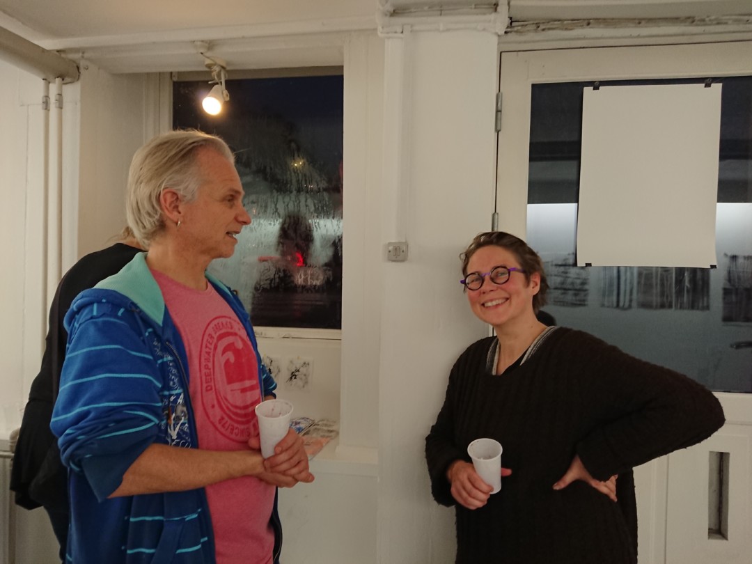 Vernissagen i Köpenhamn blev för oss svenskar en väldigt ”dansk” upplevelse. Hängning samma dag, vernissage lite oväntat på en söndag och glögg, öl och danska kakor. Trots regn så kom det massa besökare både från Malmö och Köpenhamn. Så kul!