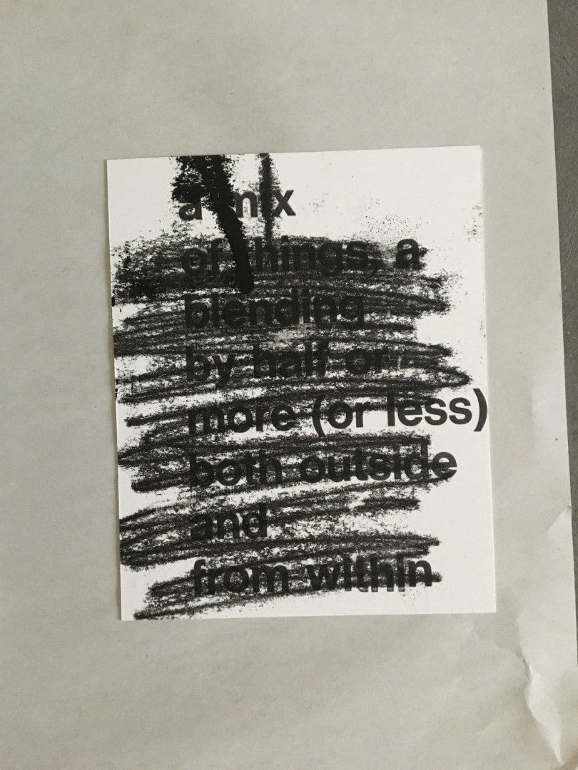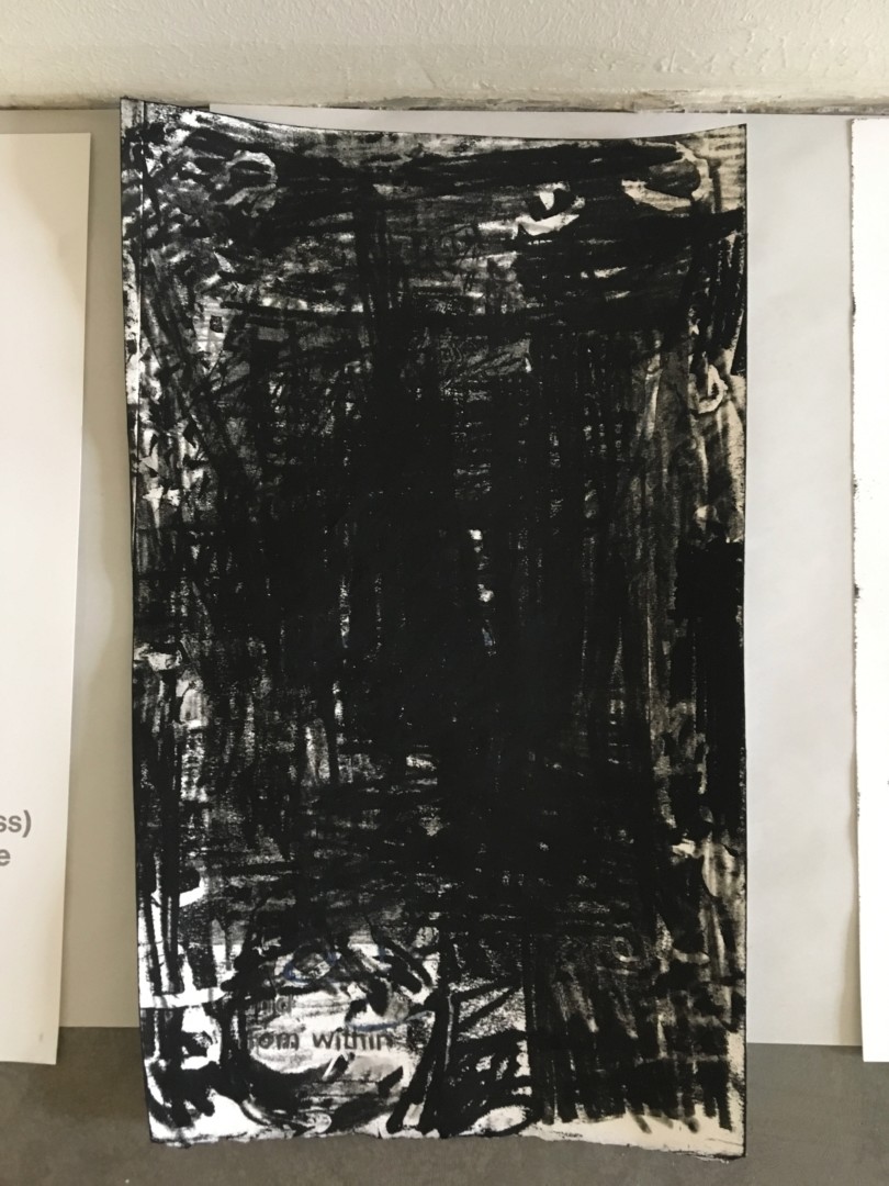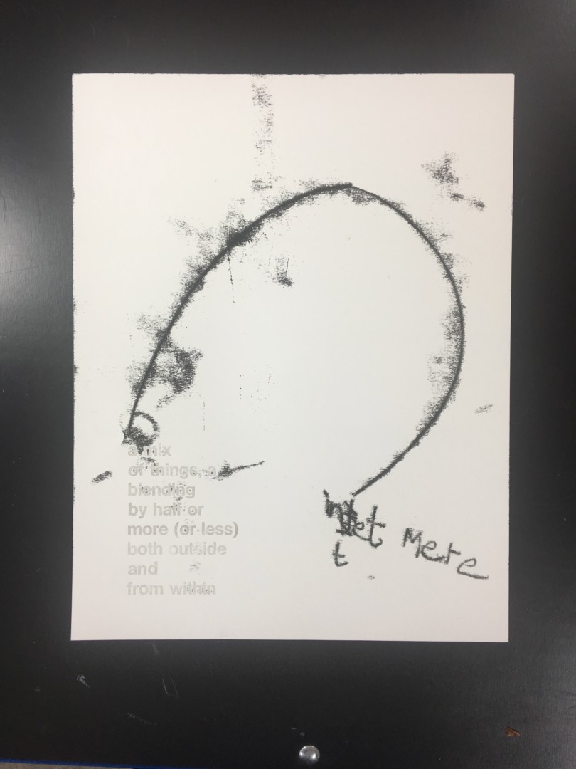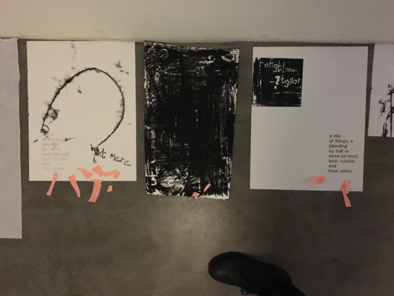 Mine projekter kredser ofte omkring dét at kunne mærke sig selv og hinanden, så personligt blev jeg inspireret af seminarets ånd/titel til at udføre en slags grafikperformance, mens vi var på KKV.