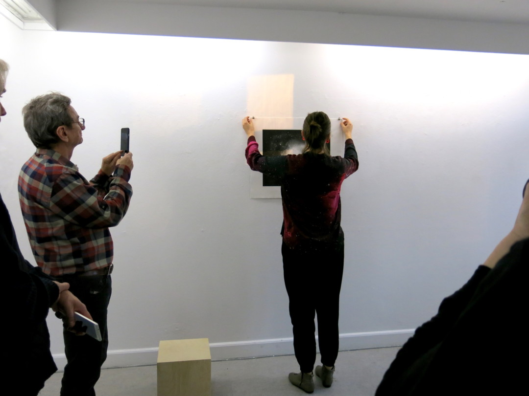 På lördagen hade vi en performance på galleriet (då flera av besökarna i Köpenhamn berättade att de hade velat se det). Att flera arbetar med performance och med kroppen i sitt eget uttryck var något som vi fokuserade på just vid våra gemensamma presentationer. Så nu valde vi att även göra en gemensam performance på vernissagen.