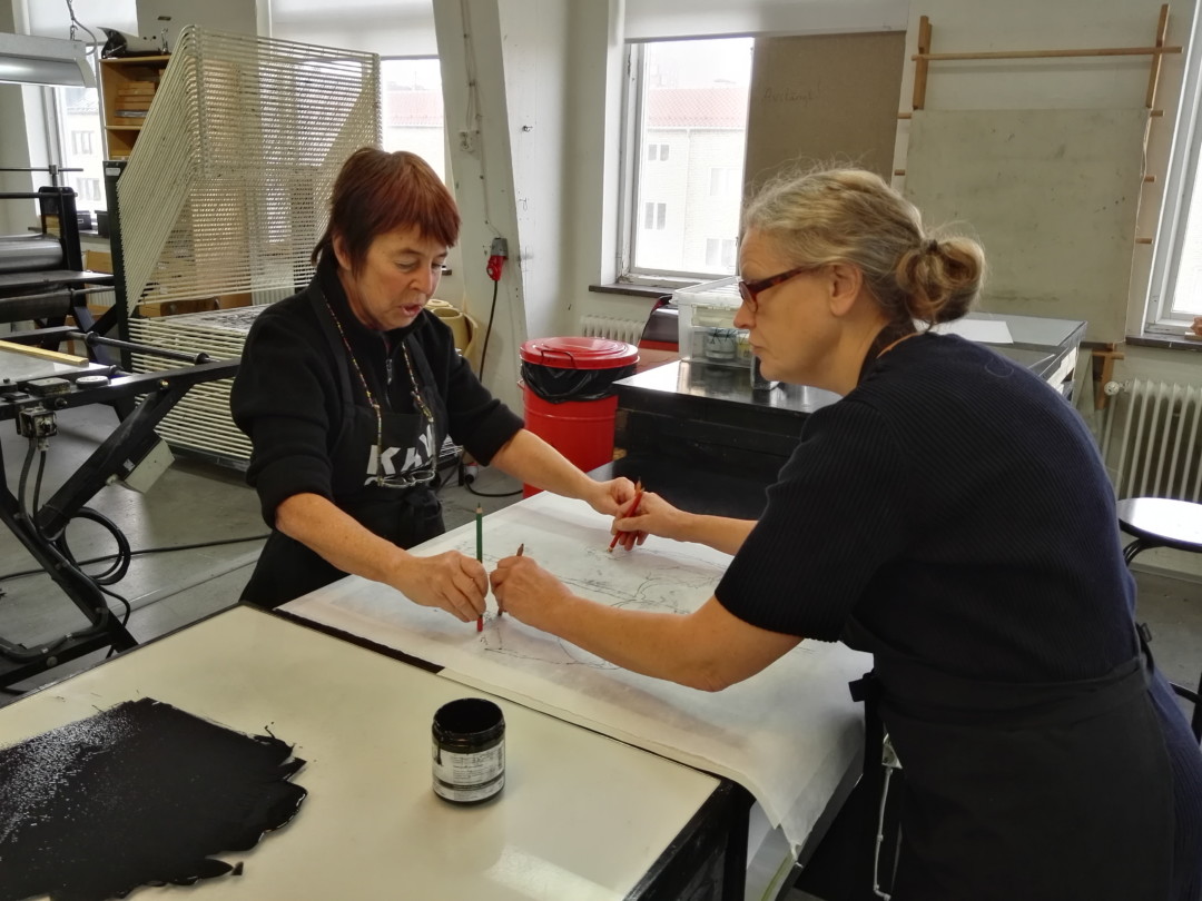 De danska grafiker som bor i Köpenhamn har ingen kollektivverkstad så för dem var detta en möjlighet att komma i kontakt med och söka till KKV i Malmö. Att pendla mellan Malmö och Köpenhamn går fort.