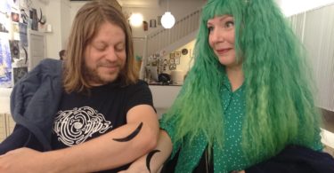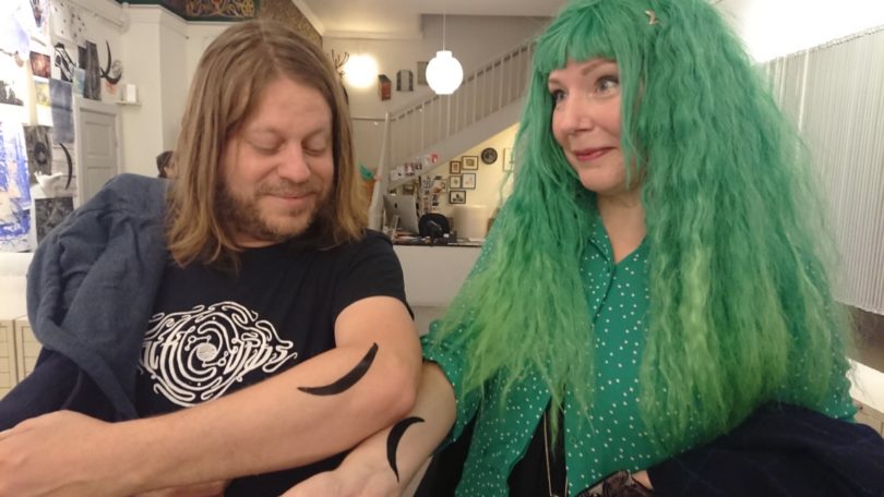 Anne Marte Overaas mun som trycktes på många av våra gemensamma blad fick bli vår symbol. Vernissagekortet blev tatueringar som vi både vi och våra besökare flitigt använde.