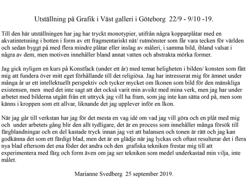 Hej, du ställer ut…Marianne Svedberg