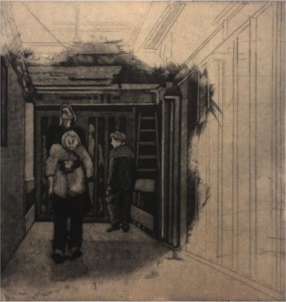 Til den her udstilling har jeg brugt en blanding af mezzotinte og koldnål. Alle billederne er lavet på kobberplade, med vuggestål, skrabe-stål og koldnål. Det er meget fysisk og kropsligt arbejde, men det er noget af det jeg godt kan lide ved at lave grafik.