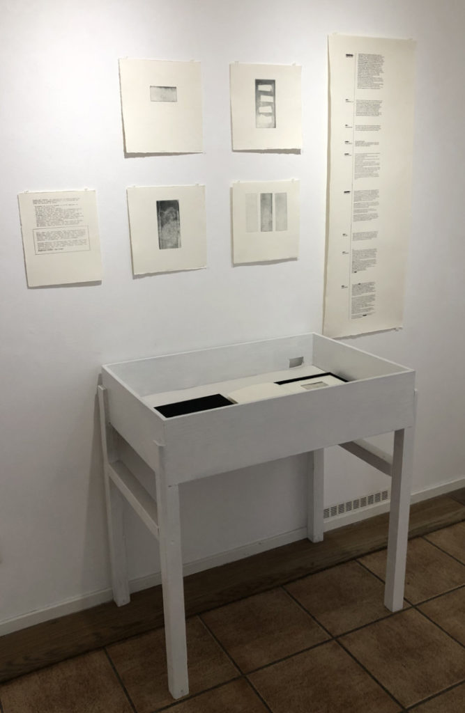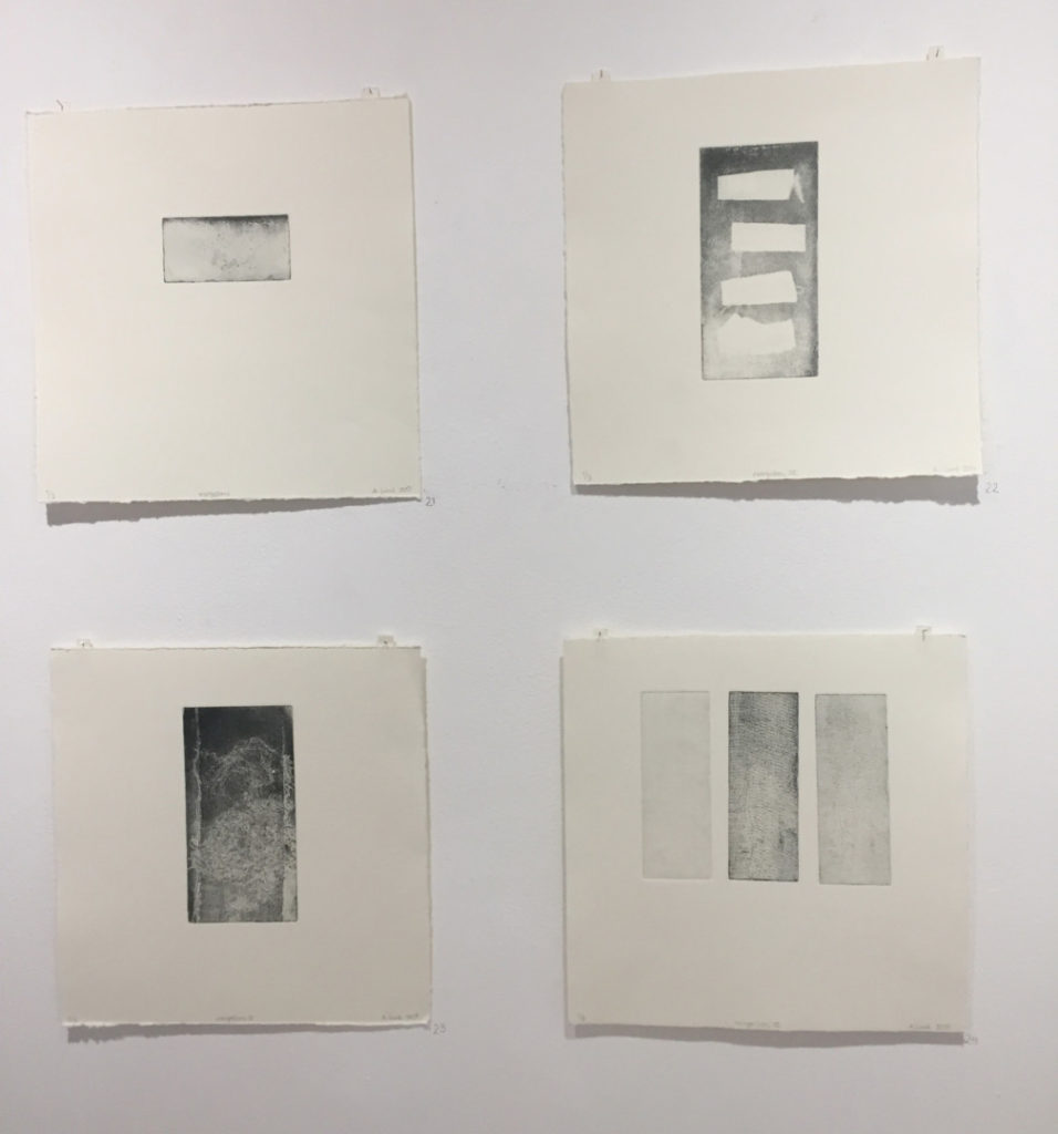 Förutom det verket visar jag några collografier, samt ytterligare en handtryckt artist book.