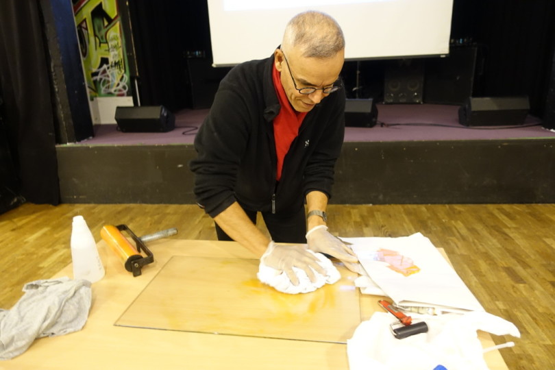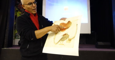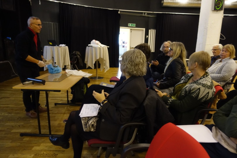 En liten trogen skara samlades. Tyvärr krockade tidpunkten med andra konstaktiviteter i Norrland, workshops och medlemsutställningar. Vi fick ta del av ett intressant föredrag om Miljövänlig verkstad arrangerat av Ann-Kristin Källström (Kulturbrygganprojekt) med Modhir Ahmed som föreläsare. De har lovat att de kommer med en artikel i Grafiknytt om miljövänliga metoder.