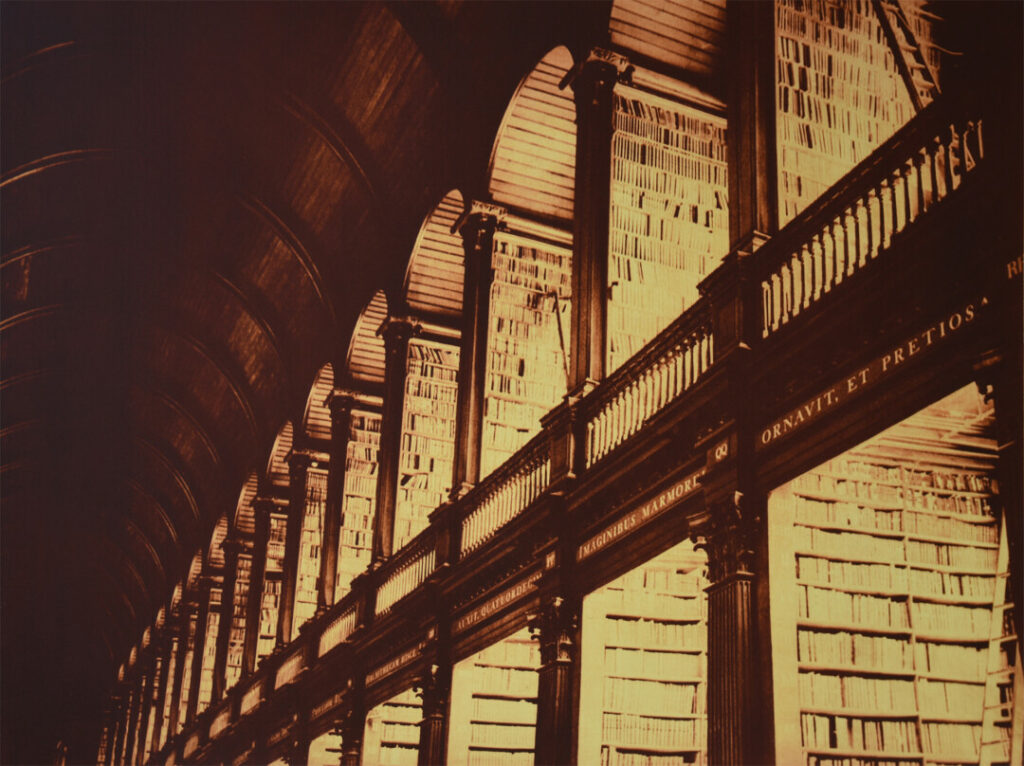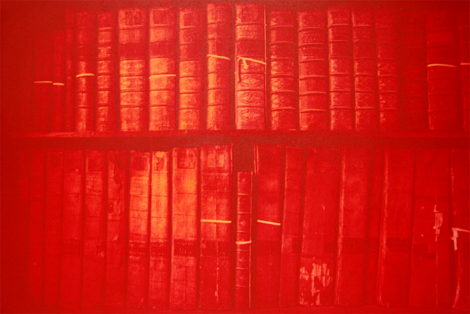 Den första delen i utställningen består i kompositioner med interiörer och bokryggar från olika bibliotek i världen. Jöran som har ett stort intresse för ordet och berättelsen och låter oss här få tankar om just boken, historien däri och allt liv som varit. Det är monumentala fotopolymergravyrer. Bilderna är som laddade teaterscener, intressanta i sin ljussättning.