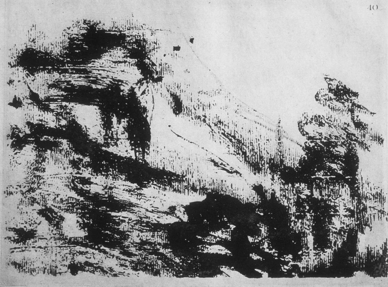 Alexander Cozens, tuschteckning från ”A new method of landscape” 1785.