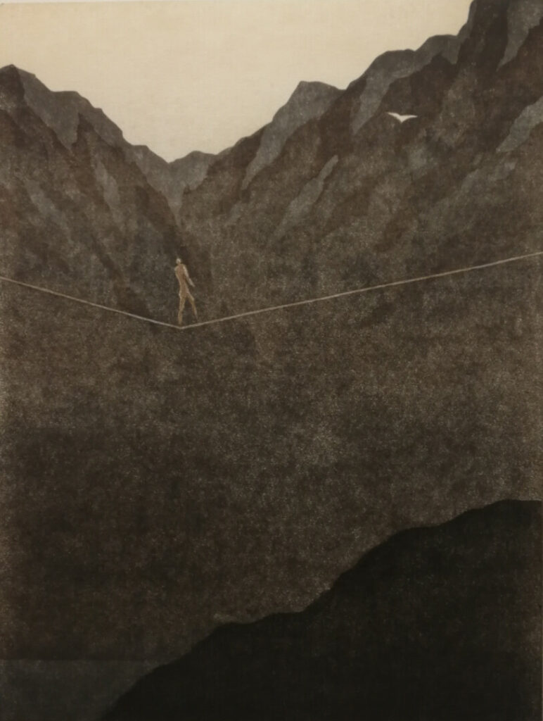 Ulla Carin jobbar med mycket svärta i sina torrnåls- och fp gravyrer.
