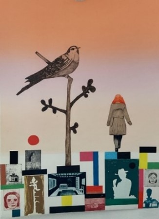 Landscapes, and trees in particular, have captured the imagination of several of the partnerships. Lena Hjelm and Marie Smith discovered a common theme of different houses and observers in the landscape. Marie’s image entitled ‘Amongst the trees’ is a collagraph made with Tetra Pak intaglio plates and lino print, whilst Lena has opted to work in digital pigment print utilising her Cintiq Wacom; two very contrasting techniques employed to respond to a common theme.