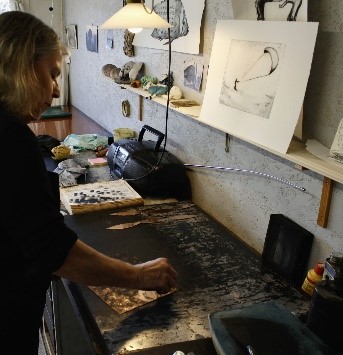 Sharing an interest in ecology, nature witnessing the passing of time, and the mythology that surrounds this, Anne-Lie Larsson Ljung and Fiona McIntyre have turned to exchanges of poetry written in Swedish and English inspired by each other’s prints. The booklet they have produced together to accompany their prints will be on show at the two exhibitions.