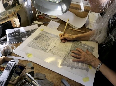 Jenny Strid with Tonia Maddison are developing prints inspired by notions of obscuration and revelation, Tonia says “I like the idea that not everything is revealed, and closer scrutiny is required”.