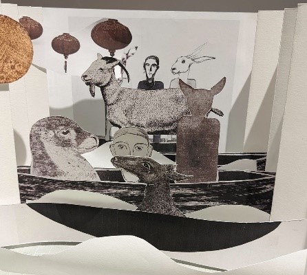 Marking a transition from the two-dimensional to the three-dimensional, Eva Spikbacka and Francis Day’s collaboration will result in an artist’s book. It features a series of Eva’s prints, which she refers to as “båtfarare” (in Finnish/Swedish). The book incorporates text in both Swedish and English and opens out as a concertina, the waves can be moved by tabs to give the impression that the boats are floating.
