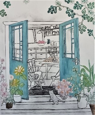 Eileen Dunlop and Kristina Stark are similarly inspired by nature and also the challenges of climate change, particularly those faced by flowers as highlighted by the phenomenon of cherry trees in Sweden flowering in November instead of April thus weakening them and making them more prone to disease. Kristina’s print features the first flower to be grown in space, the Zinnia. Eileen’s print references the famous book ‘The country diary of an Edwardian Lady’ by Edith Holden who recorded the year in the life of plants in 1907.