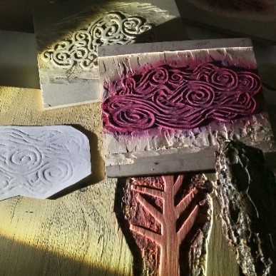 The concept that has united Fran Christen, Beth Jenkins and Jenny Palmer is the Wood Wide Web. Beth says, “as a group, we have been looking at the ways trees connect with each other. We wanted to link the physical items to the way we have been overlapping our ideas and thoughts”. As with the other partnerships, the resulting prints will be displayed side by side in the two upcoming exhibitions.