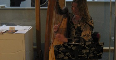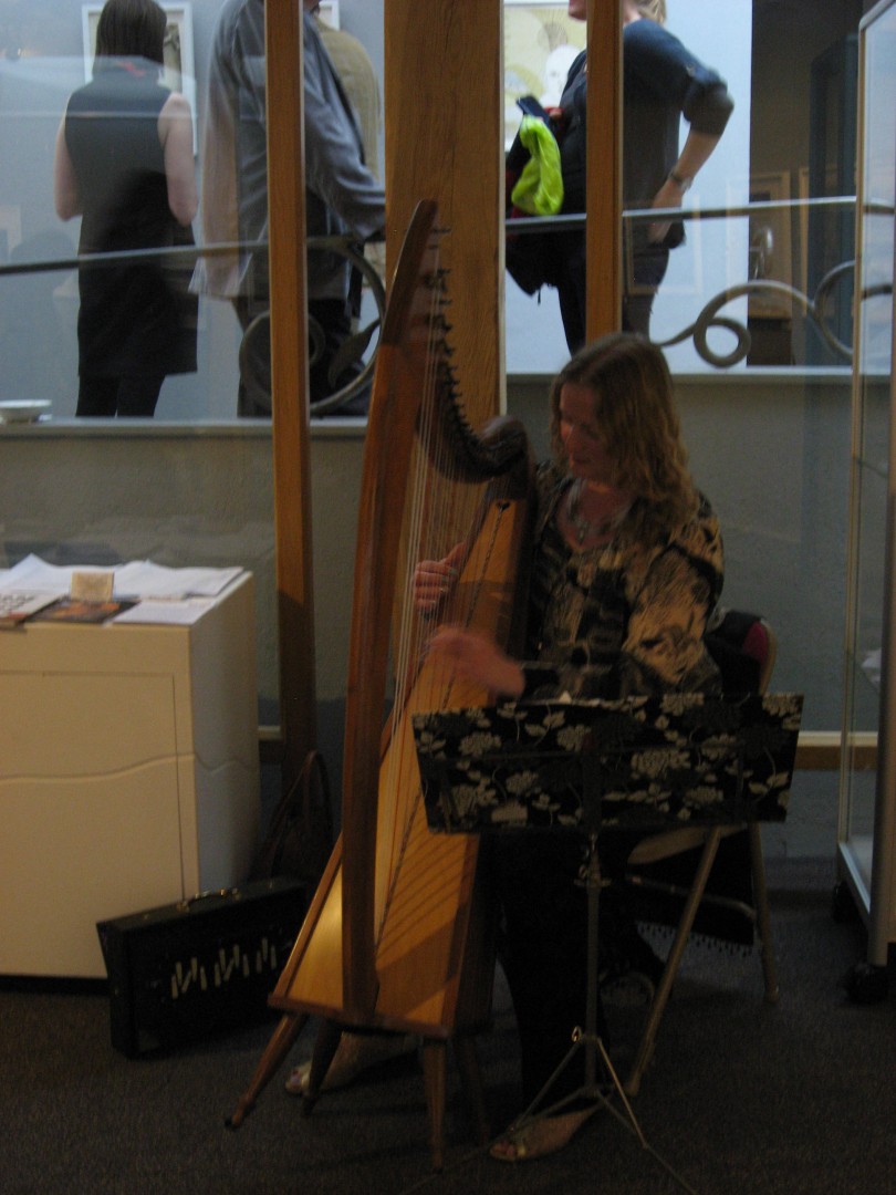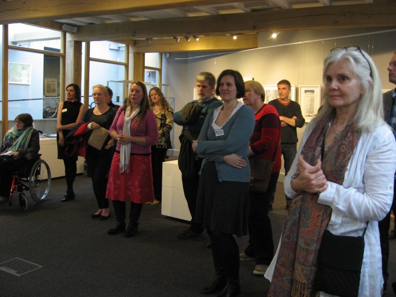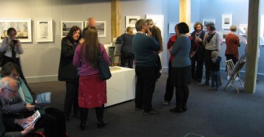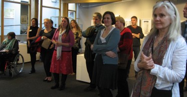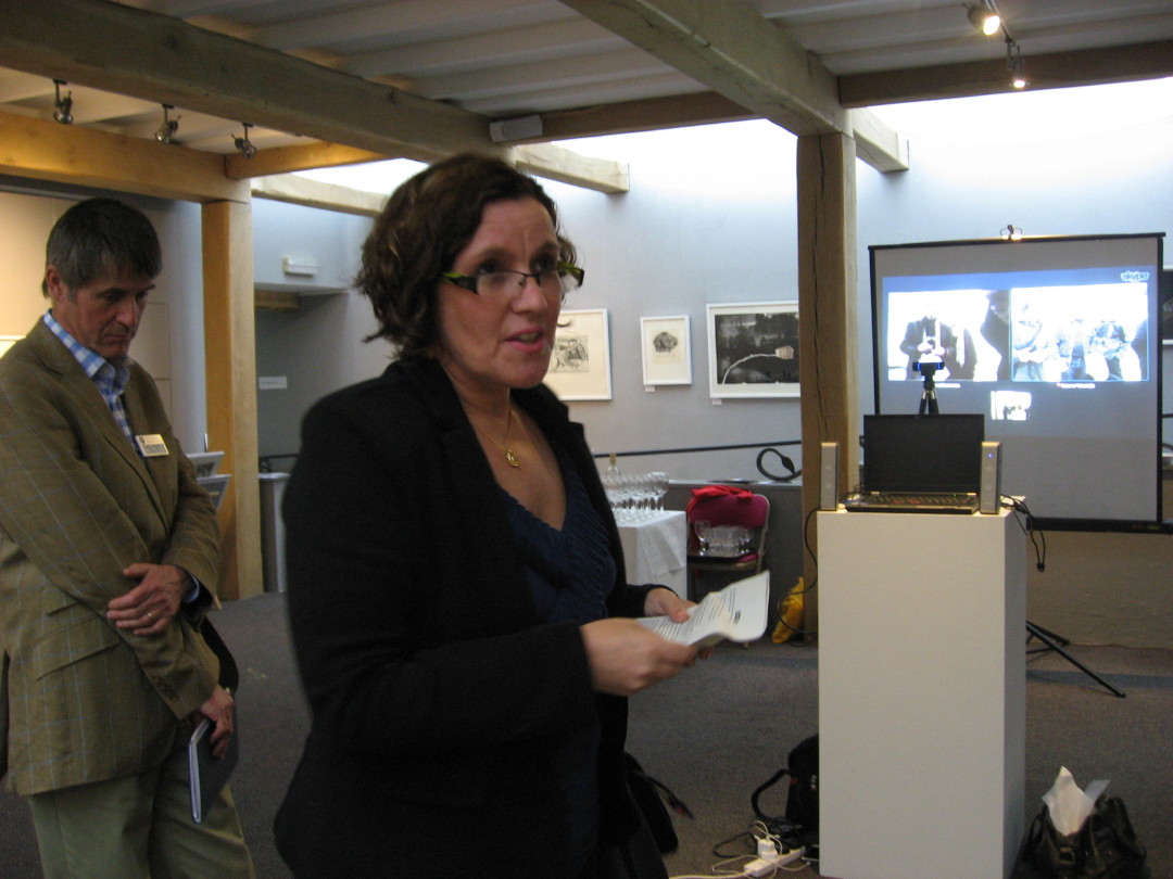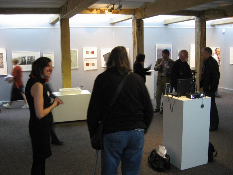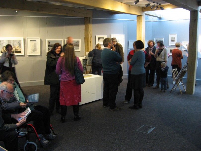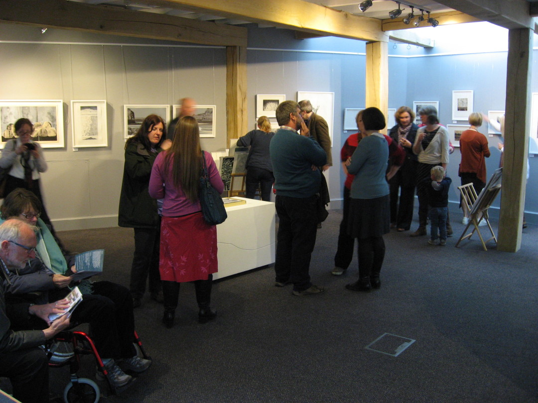 Den 8 maj hade så tre olika utställningar; i England, Finland och Sverige (Skottland visar utställningen senare i höst), med identiskt bildmaterial, vernissage samtidigt. Via Skype kunde ett gemensamt öppnande ske. Jag hade förmånen att få deltaga på vernissagen i Danby. Den var en välbesökt tillställning och det minglades till toner från harpa. I samband med utställningen arrangerade Chrysalis Arts också en rad olika aktiviteter bl a för barn och olika workshops, runt om i Yorkshire. Som ett led i det blev jag även inbjuden att hålla ett ”artist talk” för några intresserade grafiker i Thirsk.