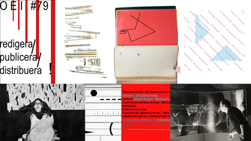 Men vid sidan av sådana ’historiska’ exempel, omfattar OEI #79 också en lång rad samtida konstnärliga och poetiska redigerings- och publiceringspraktiker – från Åse Eg Jørgensens arbeten kring papper och format till Tan Lins ambienta undersökningar av bokens och publiceringens förhandlingar i digitala miljöer och system; från Stina Perssons fotokopierade natthimmel och Marco Giovenales ”asemiska” skrift (en skrift där den semantiska betydelsen träder tillbaka för den visuella dimensionen) till Ana Luiza Dias Batistas digitala papper och franck leibovicis karta över Claude Royet-Journouds tidskrifter.