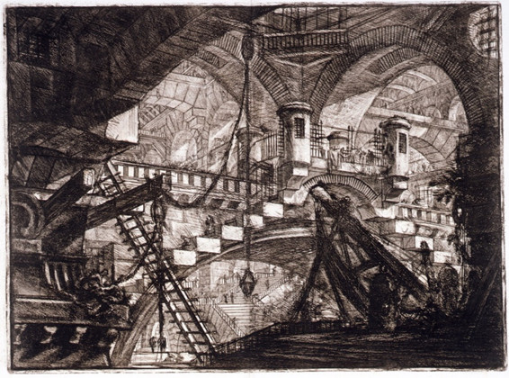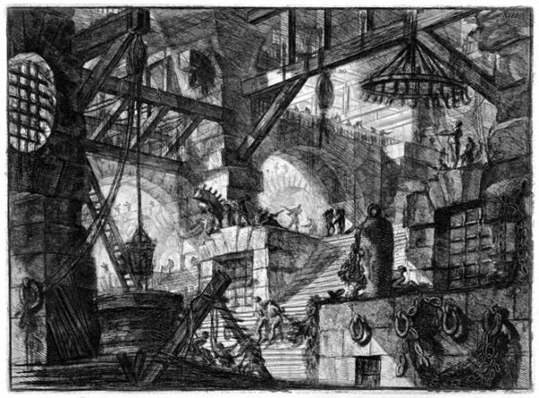 Vår tids rörliga, filmiska seende som de flesta nutidsmänniskor är tränade i, har sitt egentliga ursprung i romantikens skräckbilder. Åren omkring 1760 skapade den italienska grafikern och arkitekten Giovanni Battista Piranesi (1720-1778) sin andra upplaga etsade fängelsefantasier, den som kallas Carceri d `Invenzione. Som en blandning av rumsliga fantasier och minnesbilder av bland annat Castel Sant’Angelo i Rom och de venetianska fängelsehålorna i Dodgepalatset, möts man i de grafiska bladen av mörka, asymmetriska och komplexa rumsligheter som mer framstår som visuella språkfantasier och sublima drömtillstånd, än euklidiska helheter och massiv stenarkitektur.