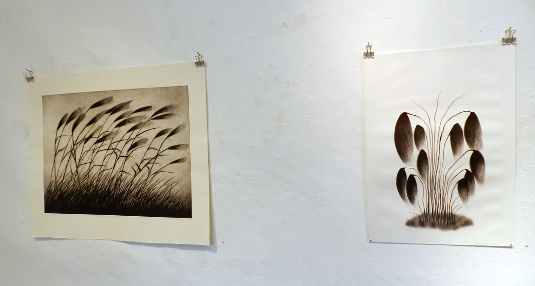 Norbert Robles arbetar med olika etsningsmetoder kombinerade med fotopolymer. Janika Herlevi förhåller sig mycket fritt till grafiken och arbetar måleriskt med monotypi och mixed media medan Anne Rantakylä gör minutiösa mezzotinter och torrnålsgravyrer.