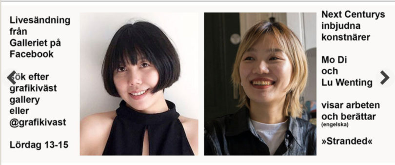 De två kinesiska konstnärerna Lu Wenting och Mo Di, som deltar i det västsvenska projektet Next Century, sitter strandade i Skövde respektive Borås och kan inte resa hem.