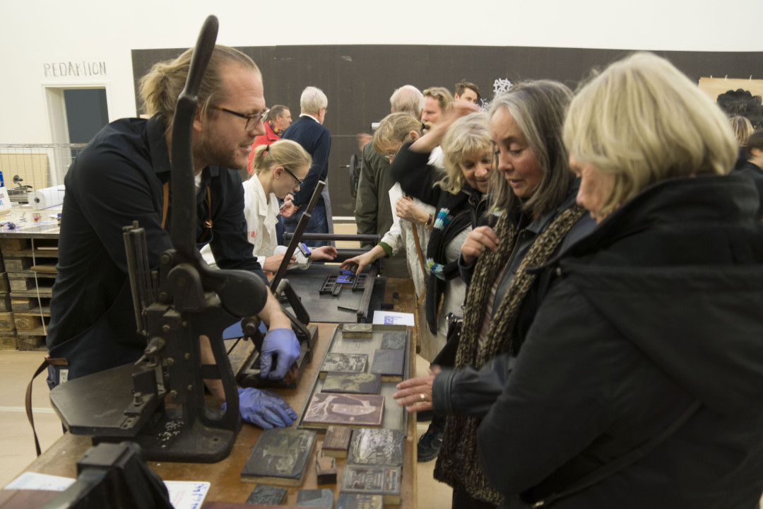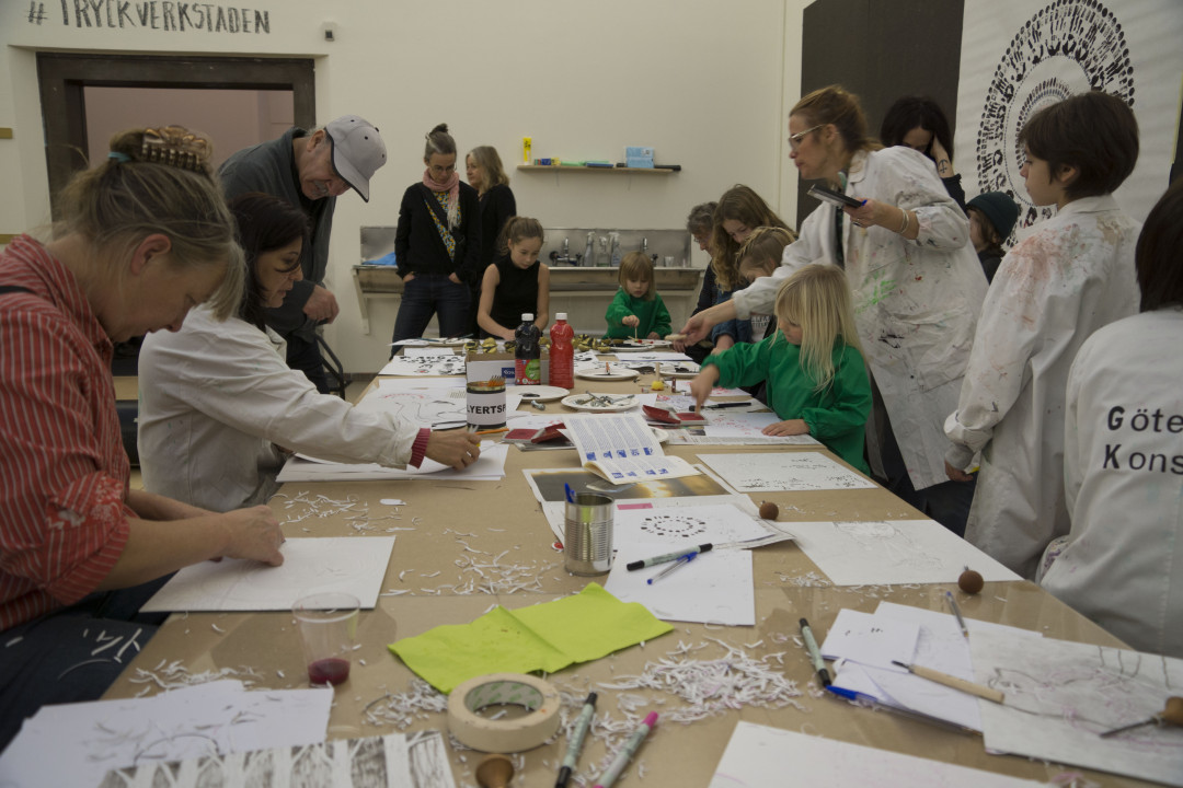 Tryckpressarna går varma i december och januari när hela Göteborgs Konsthall förvandlas till en tryckverkstad med öppen verkstad, redaktionsrum, bibliotek och utställning. Du får en unik chans att skapa och utforska olika trycktekniker självständigt eller tillsammans med professionella tryckare och konstnärer. Testa alltifrån letterpress och silkscreen till potatistryck. Experimentera i kända och oväntade material.