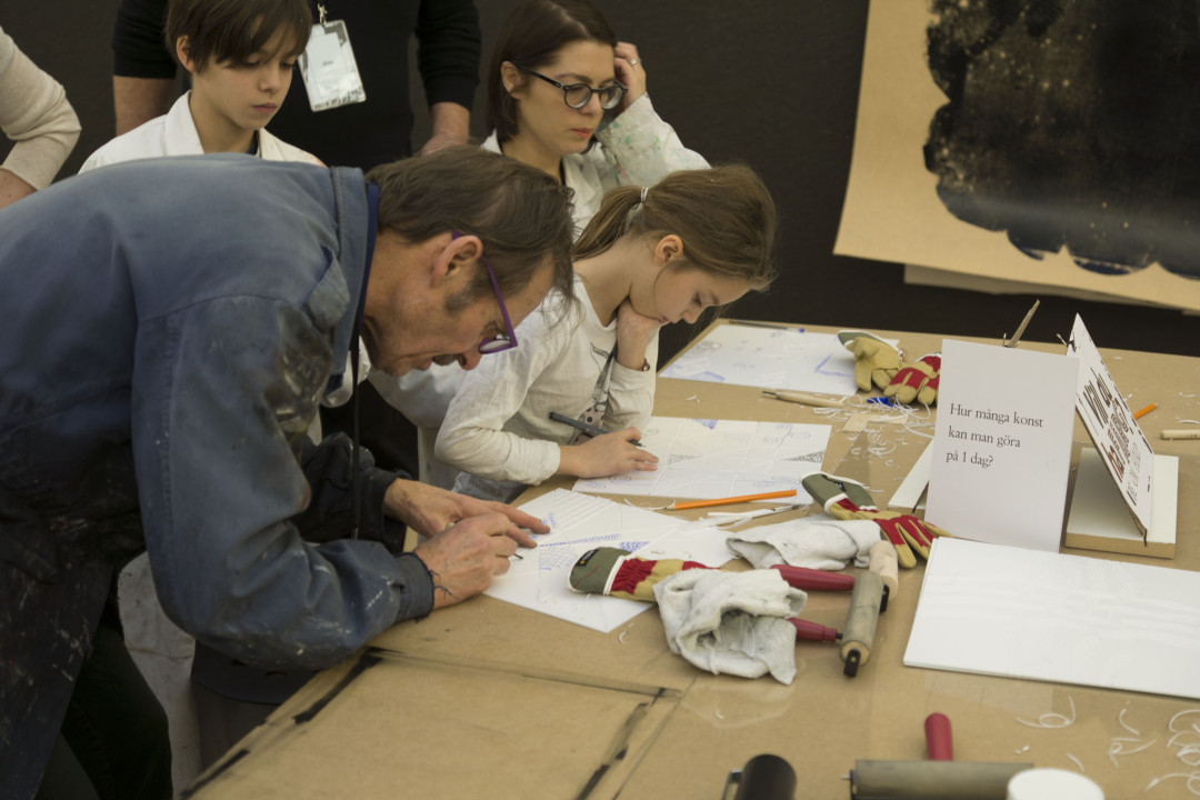 Samtidigt bjuder Göteborgs Konsthall också på ett rikt programutbud med föreläsningar, konstnärspresentationer, samtal och workshops, som alla är välkomna till. Allt som produceras, av hand och tanke, bildar en utställning som hela tiden förändras. Vad innebär det att arbeta och skapa tillsammans i rummet? Och vad betyder det långsamma hantverket i vår digitala samtid?