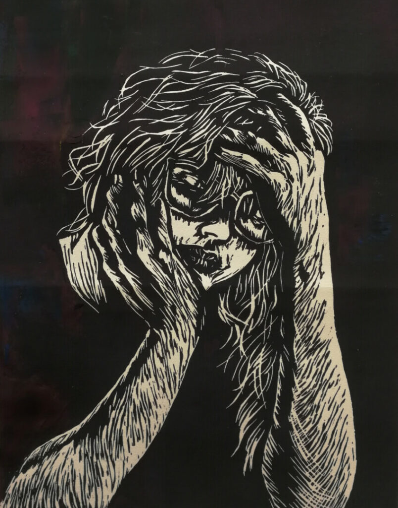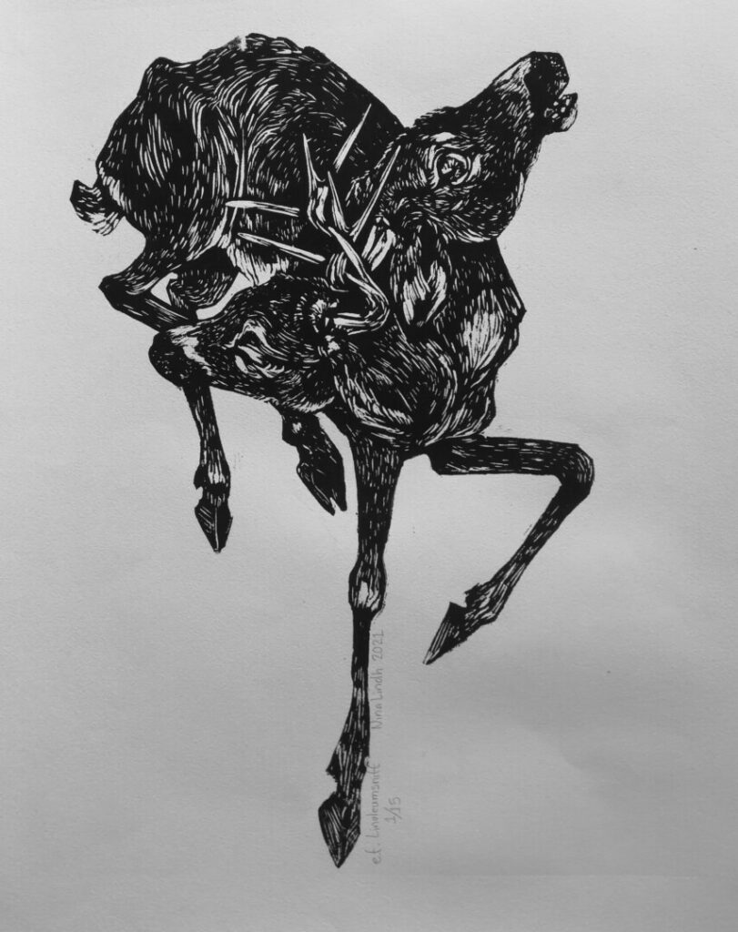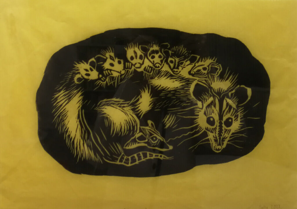 Man hittar många linoleumsnitt, men också träsnitt, torrnålar, hårdgrundsetsningar och monoprinter.